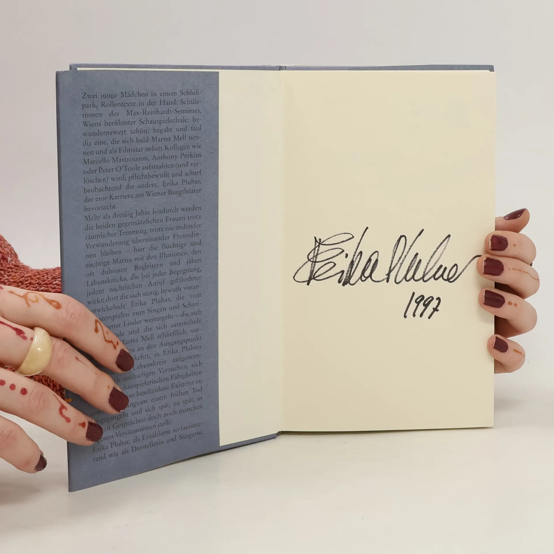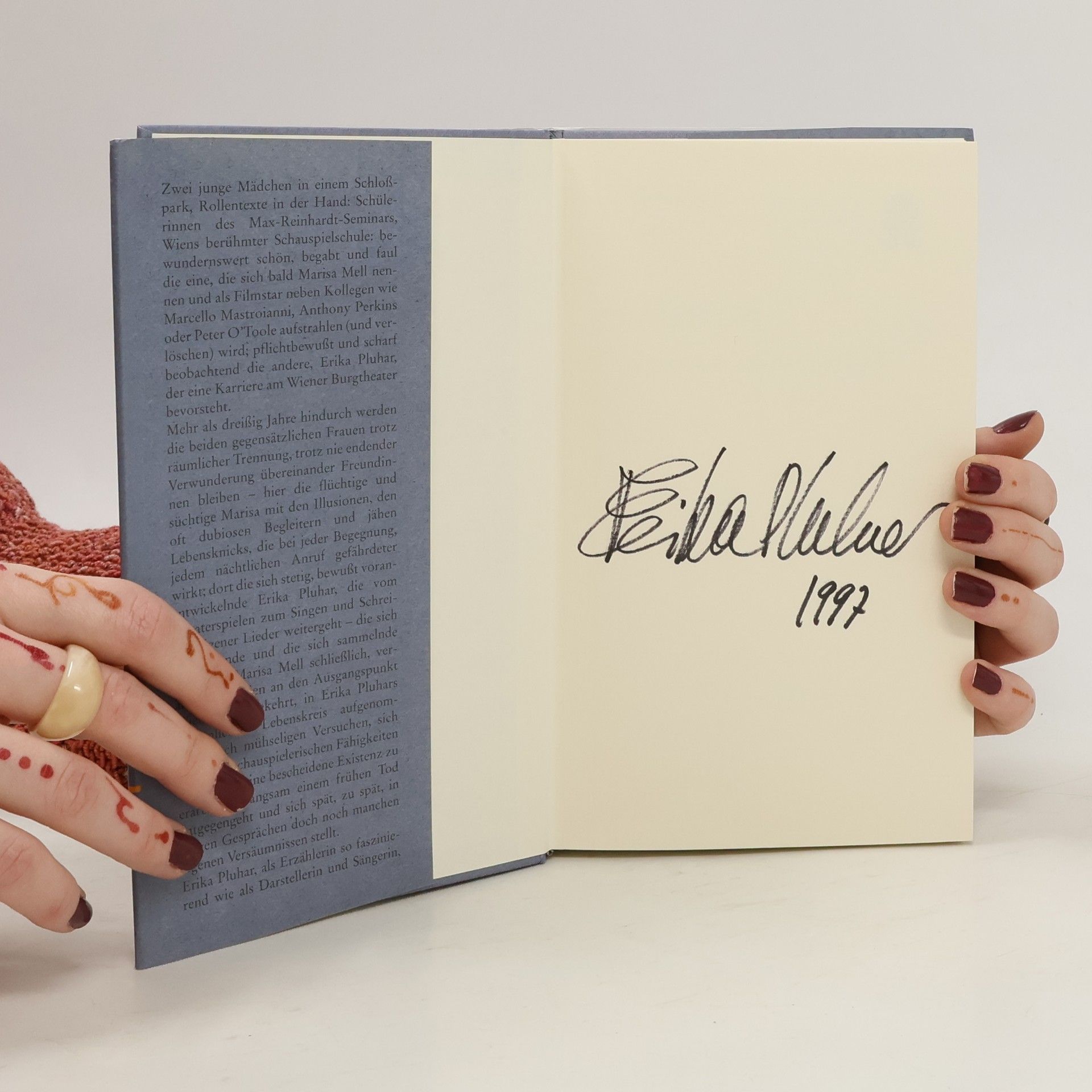 Zwei junge Mädchen in einem Schloßpark, Rollentexte in der Hand: Schülerinnen des Max-Reinhardt-Seminars, Wiens berühmter Schauspielschule. Bewundernswert schön, begabt und faul die eine, die sich bald Marisa Mell nennen und als Filmstar neben Kollegen wie Marcello Mastroianni, Anthony Perkins oder Peter O'Toole stehen wird; pflichtbewußt und scharf beobachtend die andere, der eine Karriere am Wiener Burgtheater bevorsteht. Die liebevolle, nachdenkliche, »wahre« Geschichte von zwei Leben, die scheinbar ähnlich begannen und schockierend andere Wendungen genommen haben.