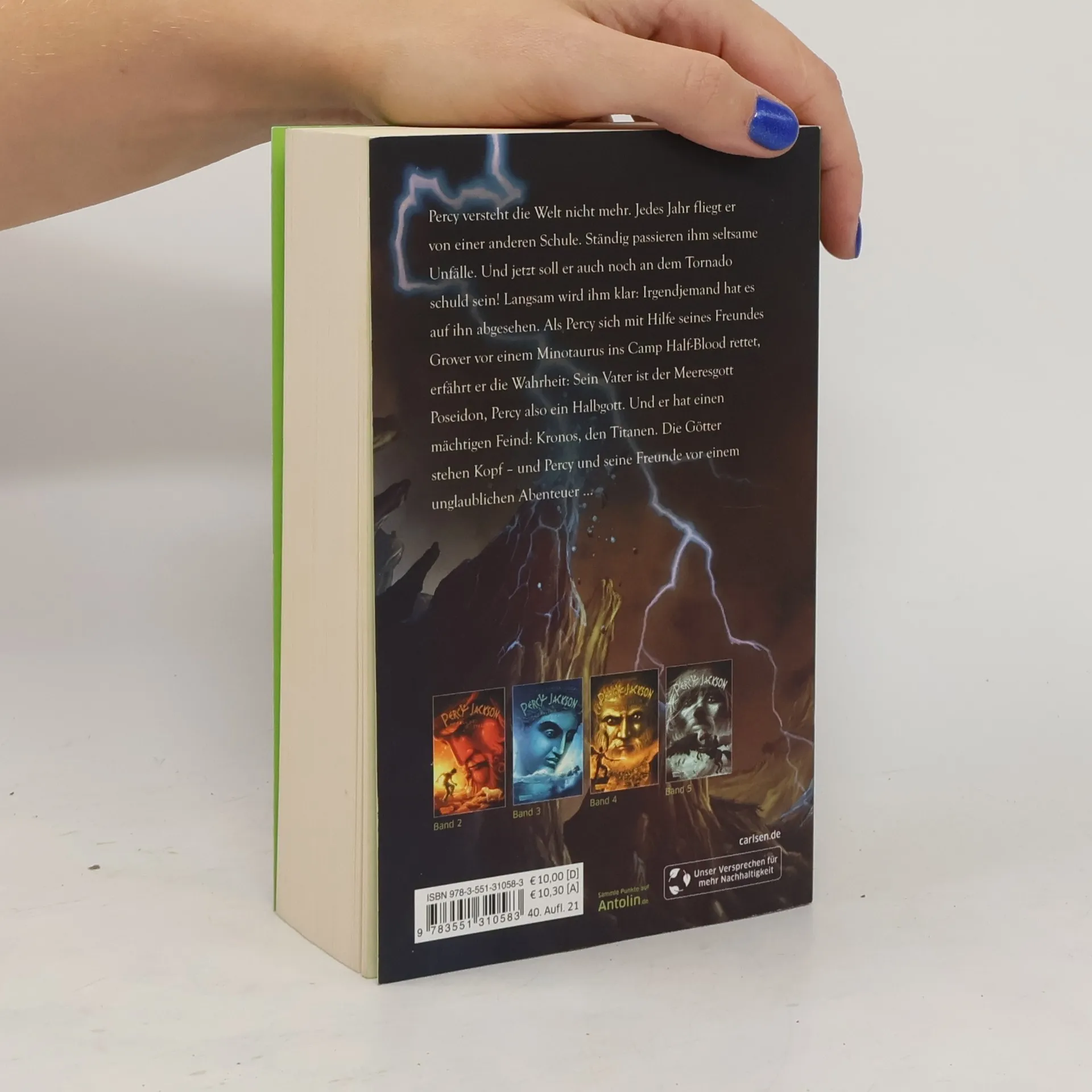 Irgendjemand hat etwas gegen ihn, da ist sich Percy sicher. Ständig fliegt er von der Schule, immer ist er an allem schuld und dann verwandelt sich sogar seine Mathelehrerin plötzlich in eine rachsüchtige Furie. Wenig später erfährt Percy das Unglaubliche: Er ist der Sohn des Meeresgottes Poseidon - und die fiesesten Gestalten der griechischen Mythologie haben ihn ins Visier genommen! Percys einzige Chance: er muss sich mit den anderen Halbgöttern verbünden.