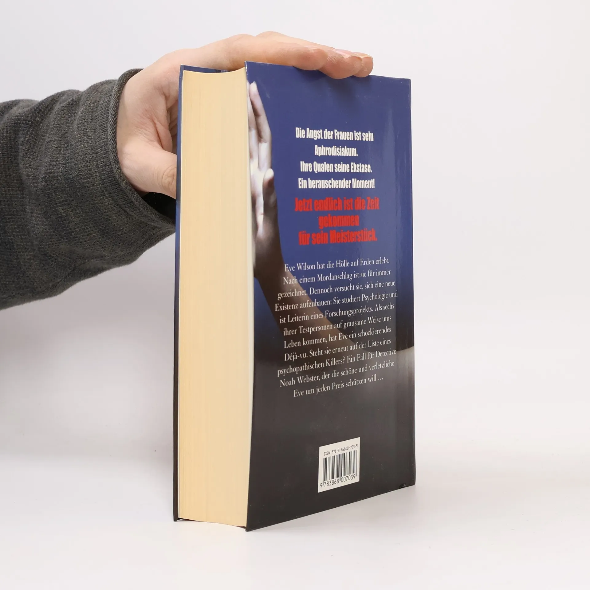 Die Angst der Frauen ist sein Aphrodisiakum. Ihre Qualen seine Ekstase. Ein berauschender Moment! Jetzt endlich ist die Zeit gekommen für sein Meisterstück. Eve Wilson hat die Hölle auf Erden erlebt. Nach einem Mordanschlag ist sie für immer gezeichnet. Dennoch versucht sie, sich eine neue Existenz aufzubauen: Sie studiert Psychologie und ist Leiterin eines Forschungsprojekts. Als sechs ihrer Testpersonen auf grausame Weise ums Leben kommen, hat Eve ein schockierendes Déjà-vu. Steht sie erneut auf der Liste eines psychopathischen Killers? Ein Fall für Detective Noah Webster, der die schöne und verletzliche Eve um jeden Preis schützen will …