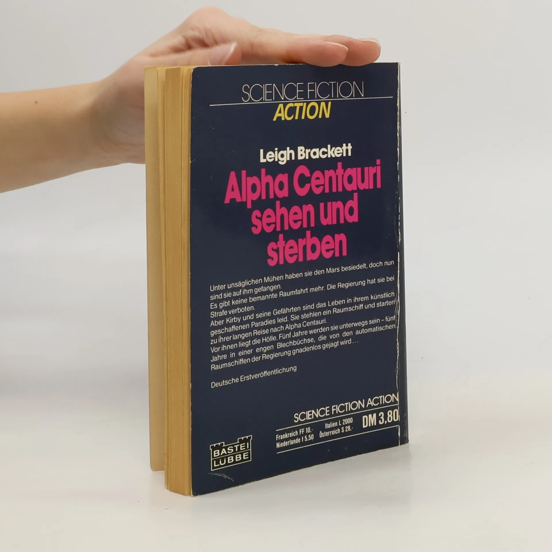 SCIENCE FICTION ACTION Leigh Brackett Alpha Centauri sehen und sterben: Unter unsäglichen Mühen haben sie den Mars besiedelt, doch nun sind sie auf ihm gefangen. Es gibt keine bemannte Raumfahrt mehr. Die Regierung hat sie bei Strafe verboten. Aber Kirby und seine Gefährten sind das Leben in ihrem künstlich geschaffenen Paradies leid. Sie stehlen ein Raumschiff und starten zu ihrer langen Reise nach Alpha Centauri. Vor ihnen liegt die Hölle. Fünf Jahre werden sie unterwegs sein - fünf Jahre in einer engen Blechbüchse, die von den automatischen Raumschiffen der Regierung gnadenlos gejagt wird... Deutsche Erstveröffentlichung