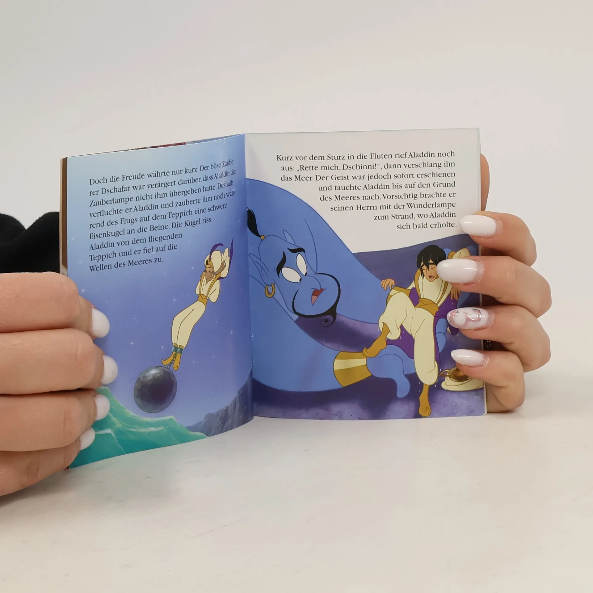 Liebevoll illustriertes Märchen um den Bettlerjungen Aladdin der mit Hilfe des Geistes aus der Wunderlampe das Herz von Prinzessin Jasmin erobert.