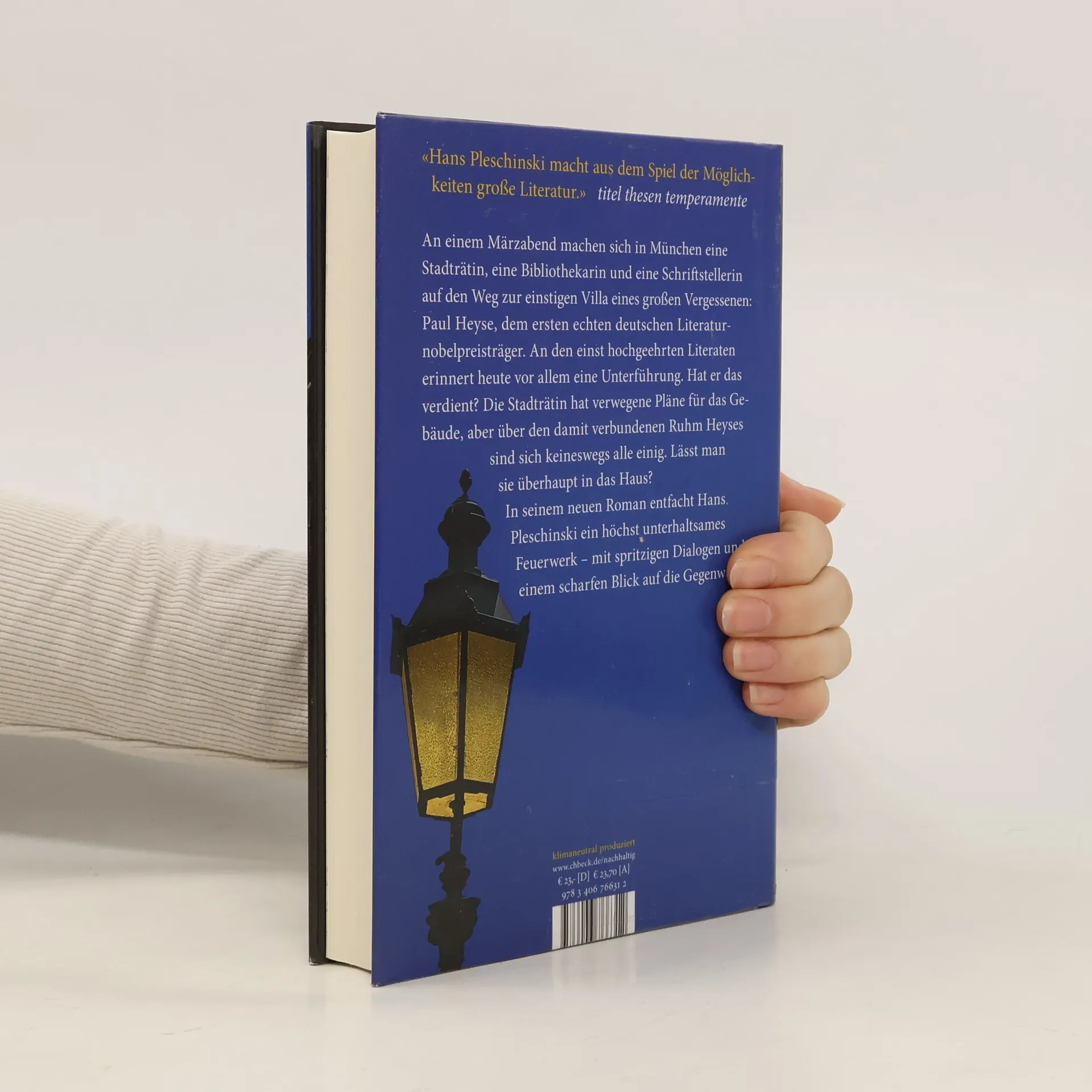 An einem Märzabend macht sich die Münchner Stadträtin Antonia Silberstein auf den Weg zu einer Ortsbesichtigung der besonderen Art. In ihrer Begleitung: die Schriftstellerin Ortrud Vandervelt und die Bibliothekarin Therese Flößer. Das Ziel des launigen Spaziergangs der drei Frauen: die hinter einer Mauer versteckt liegende einstige Villa eines großen Vergessenen. Antonia Silberstein hat verwegene Pläne für diese Villa, aber sie braucht den guten Rat eines Experten. Schon auf dem Spaziergang sind sich die Frauen, zwischen Autos, Passanten, Verkehrsinseln mäandernd, uneins über Rang, Werk und Vermächtnis des Mannes, dessen einstige Behausung sie in ein spektakuläres Kulturzentrum verwandeln könnten: Paul Heyse. Der erste echte deutsche Literaturnobelpreisträger (1830– 1914), hochgeehrt, liberal, ein schöner Mann mit einer liebenswerten Ausstrahlung, Autor von Romanen, Theaterstücken und nicht zuletzt 180 Novellen, ist so vergessen, dass in München vor allem eine Unterführung an ihn erinnert. Hat er das verdient? In seinem neuen Roman erzählt Hans Pleschinski kenntnisreich, scharfzüngig und komisch von Heyses Leben und Werk, von Ruhm und Vergänglichkeit und dem stets bedrohten Reichtum der Kultur in einer sich verschleißenden Welt. Mit einem genauen Blick auf die Gegenwart entfachter in spritzigen Dialogen ein höchst unterhaltsames Feuerwerk.