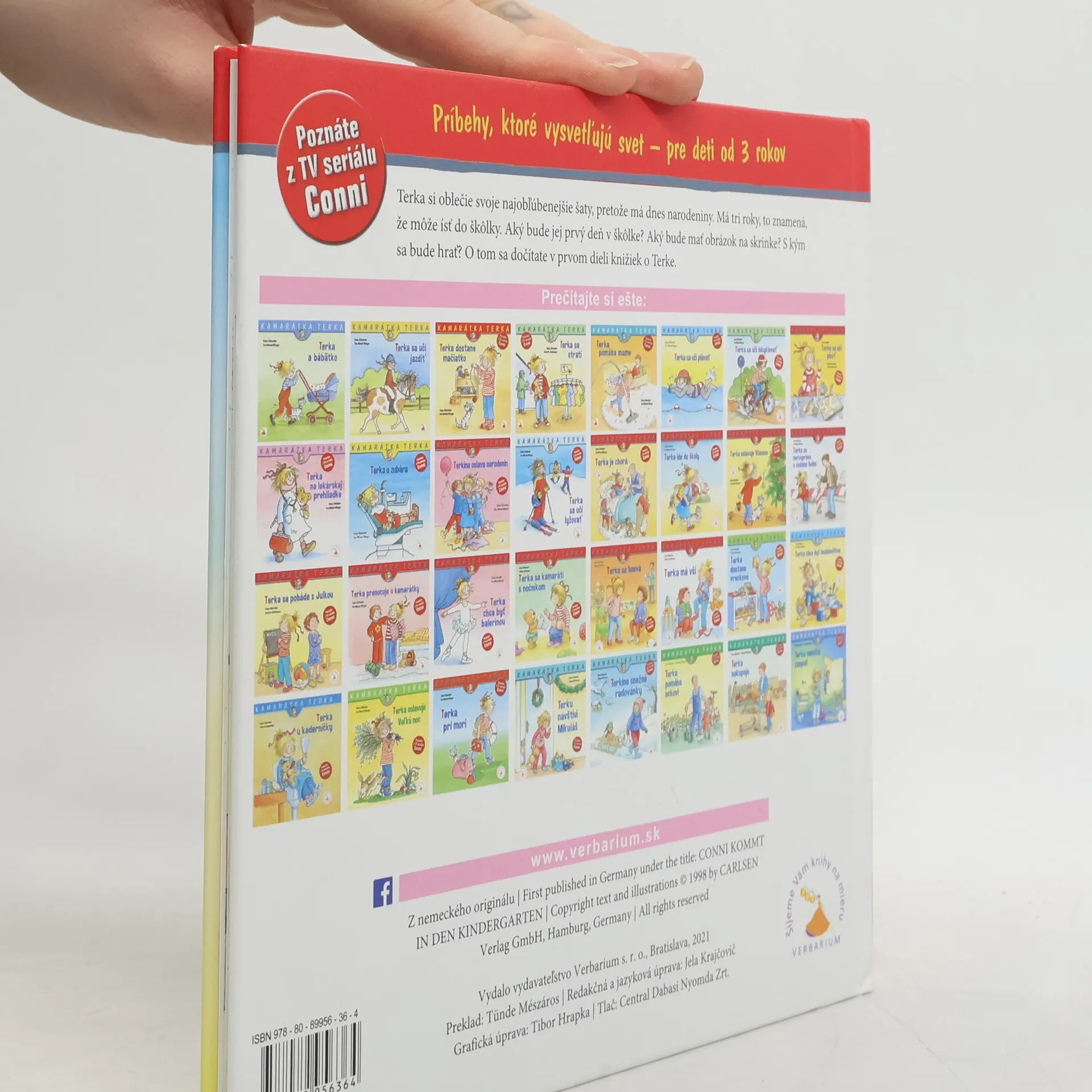 Terka si oblečie svoje najobľúbenejšie šaty, pretože má dnes narodeniny. Má tri roky, to znamená, že môže ísť do škôlky. Aký bude jej prvý deň v škôlke? Aký bude mať obrázok na skrinke? S kým sa bude hrať? O tom sa dočítate v prvom dieli knižiek o Terke.