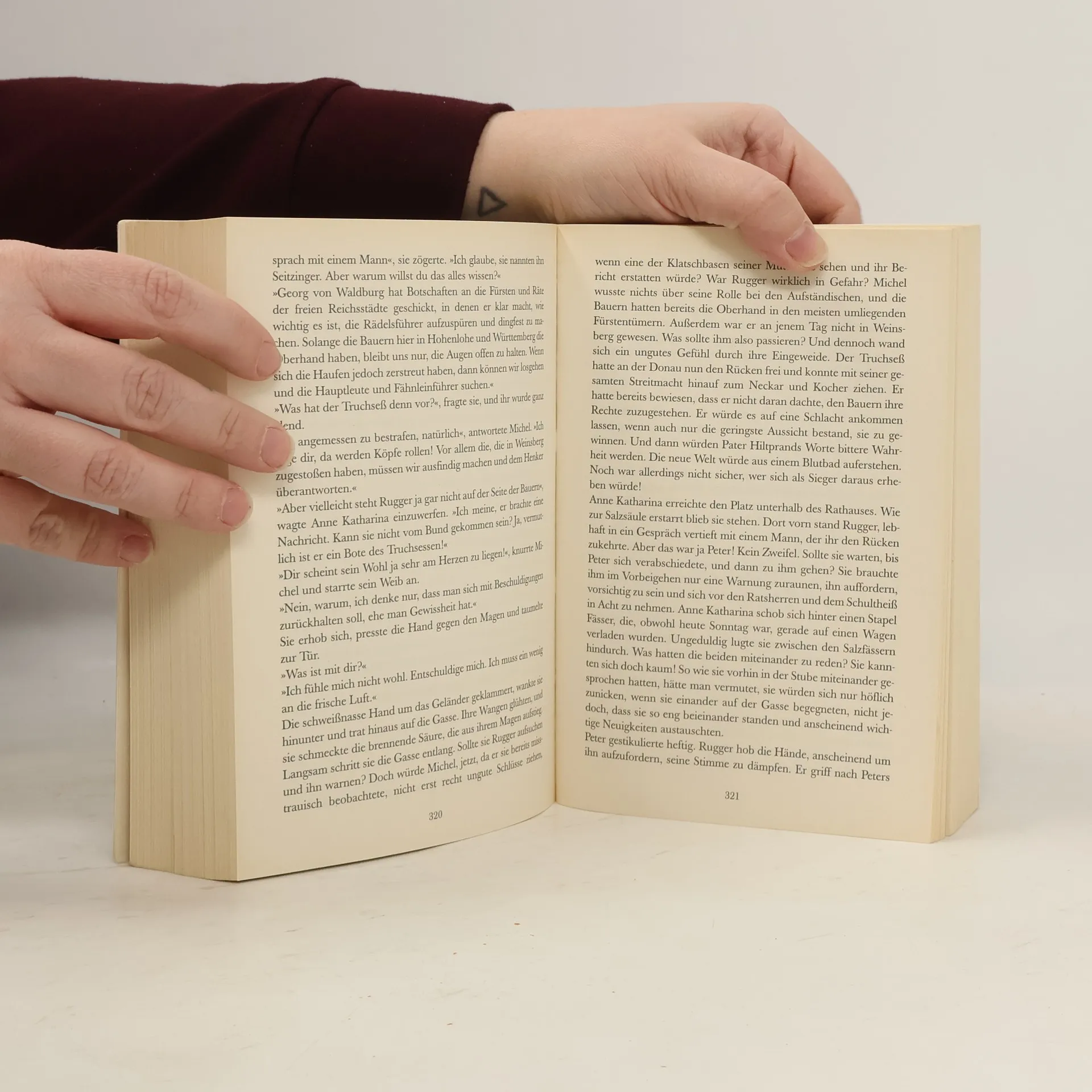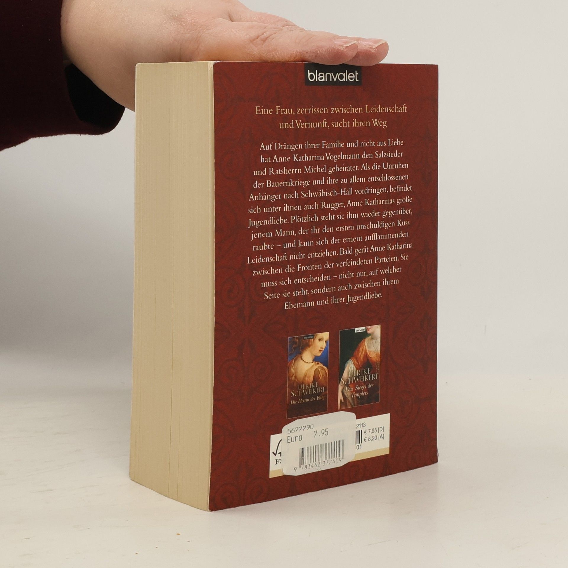 Eine Frau, zerrissen zwischen Leidenschaft und Vernunft, sucht ihren Weg Auf Drängen ihrer Familie und nicht aus Liebe hat Anne Katharina Vogelmann den Salzsieder und Ratsherrn Michel geheiratet. Als die Unruhen der Bauernkriege und ihre zu allem entschlossenen Anhänger nach Schwäbisch-Hall vordringen, befindet sich unter ihnen auch Rugger, Katharinas große Jugendliebe. Plötzlich steht sie ihm wieder gegenüber, jenem Mann, der ihr den ersten unschuldigen Kuss raubte – und kann sich der erneut aufflammenden Leidenschaft nicht entziehen. Bald gerät Anne Katharina zwischen die Fronten der verfeindeten Parteien. Sie muss sich entscheiden – nicht nur, auf welcher Seite sie steht, sondern auch zwischen ihrem Ehemann und ihrer Jugendliebe. Historische Details und ein berührendes Schicksal: meisterhaft verknüpft.