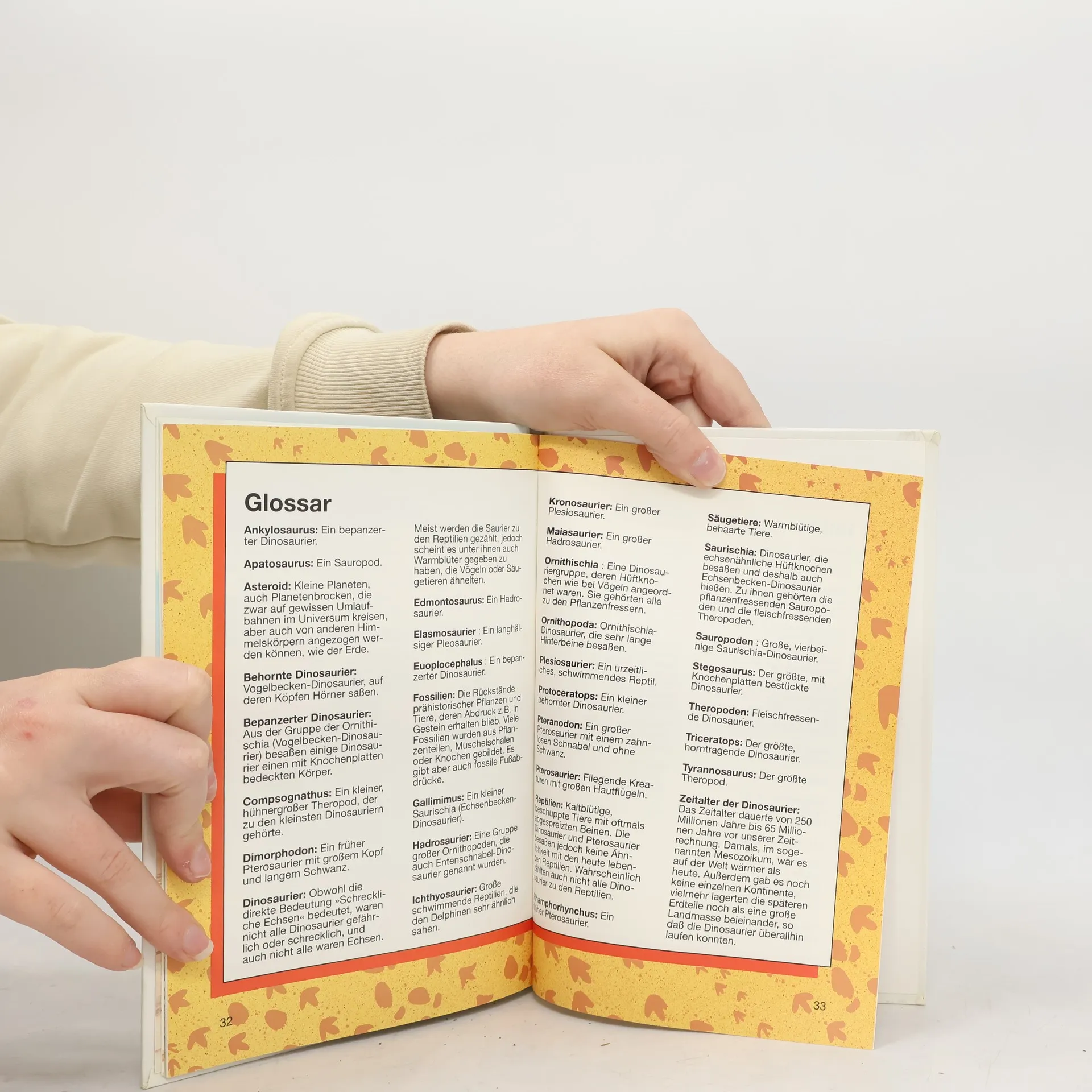 Die Dinosaurier lebten über 160 Millionen Jahre lang auf der Erde. Einige waren flinke Jäger, andere friedliche Pflanzenfresser. Die Dinosaurier sind lange vor dem Erscheinen der Menschen ausgestorben. Wir wissen nur etwas über sie, weil sich ihre Überreste in Gesteinen erhalten haben. Wann genau haben sie gelebt! Wie groß waren die größten Dinosaurier? Und warum sind sie ausgestorben? Band 1 der neuen großen Wissensreihe memo zeigt faszinierende Bilder von fossilen Dinosaurier-Skeletten, naturgetreuen Sauriermodellen und vom Leben der Urzeitriesen. Die Kombination von Bild und kurzen Texten macht das Lesen und Lernen leicht und macht zugleich neugierig auf mehr. Rubriken wie „Erstaunliche Fakten“, „Fragen und Antworten“ und „Rekordverdächtig“ vertiefen das vermittelte Wissen, ein Glossar am Ende des Buches gibt noch einmal einen Überblick über die Thematik. Ideal auch für Referate und Schulprojekte.