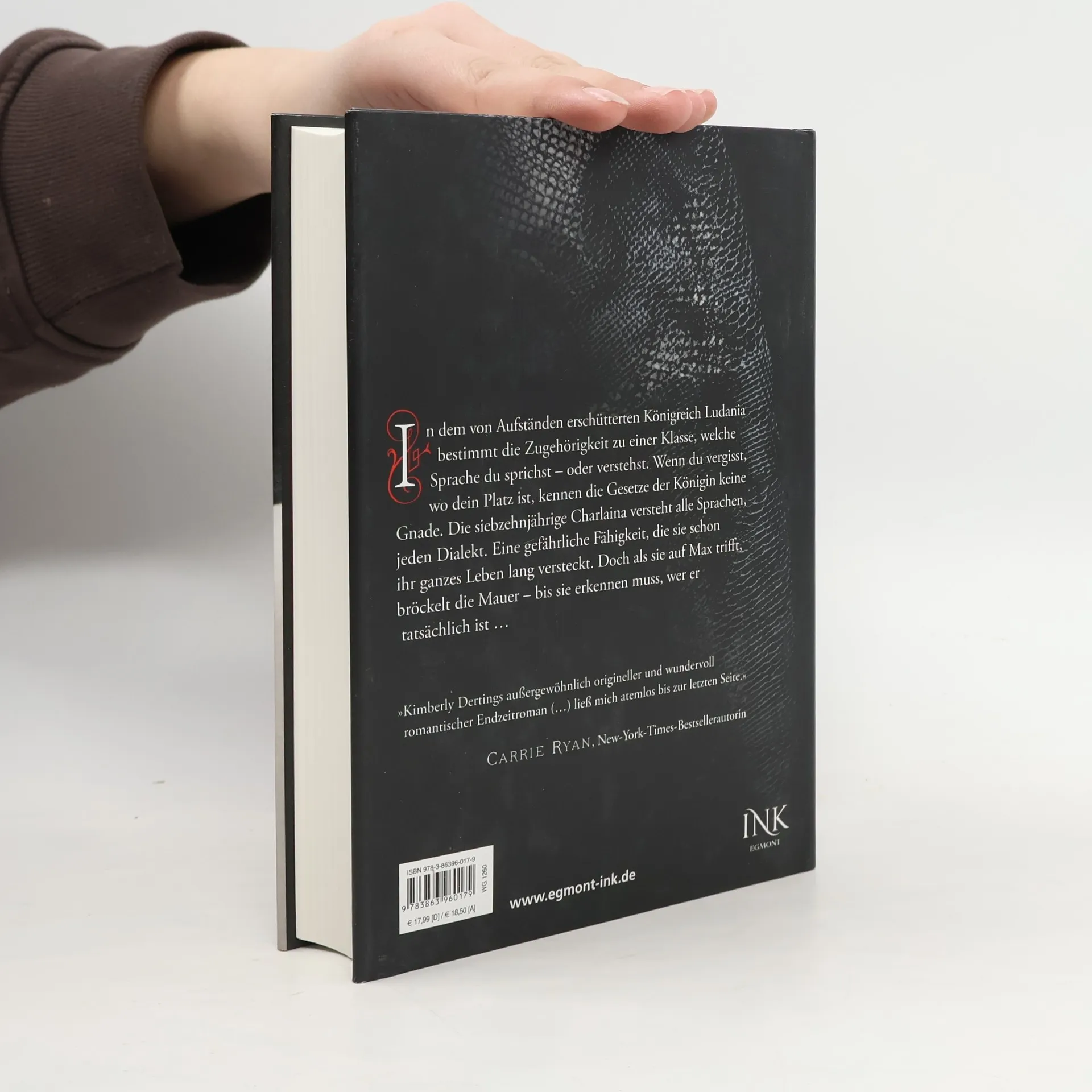 In dem von Aufständen erschütterten Königreich Ludania bestimmt die Zugehörigkeit zu einer Klasse, welche Sprache du sprichst – oder verstehst. Wenn du vergisst, wo dein Platz ist, kennen die Gesetze der Königin keine Gnade. Allein auf den Blickkontakt mit gesellschaftlich Höhergestellten steht der Tod. Die siebzehnjährige Charlaina – kurz Charlie – versteht alle Sprachen, jeden Dialekt. Eine gefährliche Fähigkeit, die sie schon ihr ganzes Leben lang verstecken muss. Nur in den illegalen Clubs im Untergrund der Stadt kann sie das für kurze Zeit vergessen. Dort trifft sie den geheimnisvollen Max, der eine Sprache spricht, die Charlie noch nie gehört hat, und der beinahe ihr Geheimnis entdeckt. Und als die Rebellen die Stadt schließlich überrennen, ist er es, der erkennt, dass Charlie der Schlüssel für ihren Sieg sein könnte. Doch für wen wird Max sich entscheiden, für das Mädchen, das ihn fasziniert, oder für seine Königin?