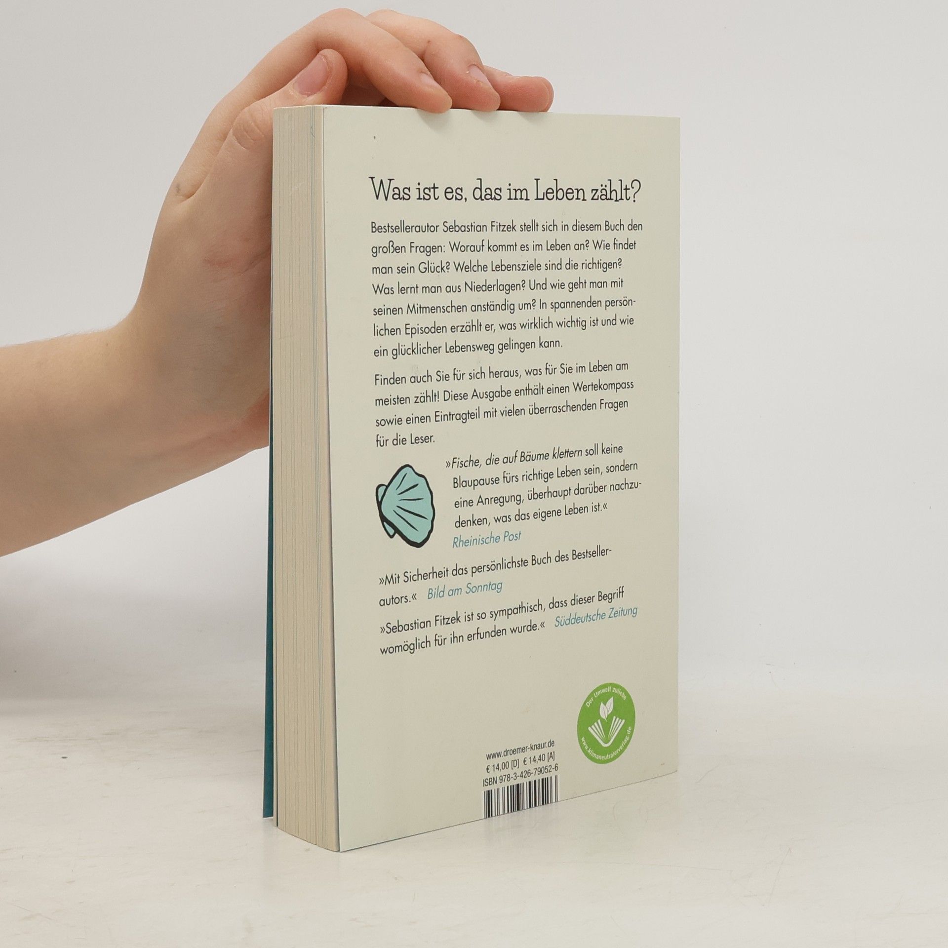 Bestseller-Autor Sebastian Fitzek stellt sich in diesem Buch den existentiellen Fragen: Was zählt im Leben? Wie findet man sein Glück? Welche Lebensziele sind richtig? Was lernt man aus Niederlagen? Und wie geht man mit seinen Mitmenschen um? In spannenden persönlichen Episoden erzählt er, was im Leben wichtig ist und wie ein glücklicher Lebensweg gelingen kann. Inspiriert wurde Sebastian Fitzek zu diesem Buch durch das Vatersein – und die Frage, was er seinen Kindern für das Leben mitgeben würde, wenn ihm nicht mehr viel Zeit bliebe. Und so ist „Fische, die auf Bäume klettern" ein sehr persönliches Vermächtnis eines Vaters an seine noch jungen Kinder, zugleich aber ein Buch für alle, die Halt suchen und sich der Werte, die ihnen wichtig sind, vergewissern möchten. Sebastian Fitzeks erster Ratgeber begeistert mit spannenden Lebensweisheiten und persönlichen Einblicken! „An Fitzek kommt echt keiner vorbei.“ Rheinische Post „Sebastian Fitzek scheut weder die große Sinnfrage noch die Preisgabe sehr persönlicher Informationen.“ Westdeutsche Zeitung „Mit Sicherheit das persönlichste Buch des Autors.“ Bild am Sonntag „Fitzek, der sonst so routiniert von Gewaltmördern schreibt und hartgesottene Ermittler das Gruseln lehrt, zeigt jetzt seine sensible Seite.“ Frankfurter Neue Presse