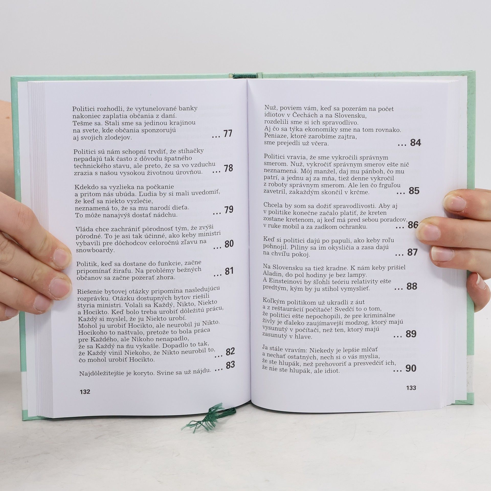 Sbírka postřehů, aforismů, úvah, glos, sentencí a samozřejmě otázek a odpovědí, jejichž autoři, Zuzana Bubílková a Miloslav Šimek, se zaměřili na českou realitu po listopadu 89. Politická satira, jejíž součástí jsou vtipy z rádia Bubu, vychází ve dvanáctém svazku Knihovny Jiřího Grossmanna a je uvedena mottem: "Tato knížka je nevalné úrovně. Jinak to ani být nemůže. Zabývá se totiž převážně naší politickou scénou."