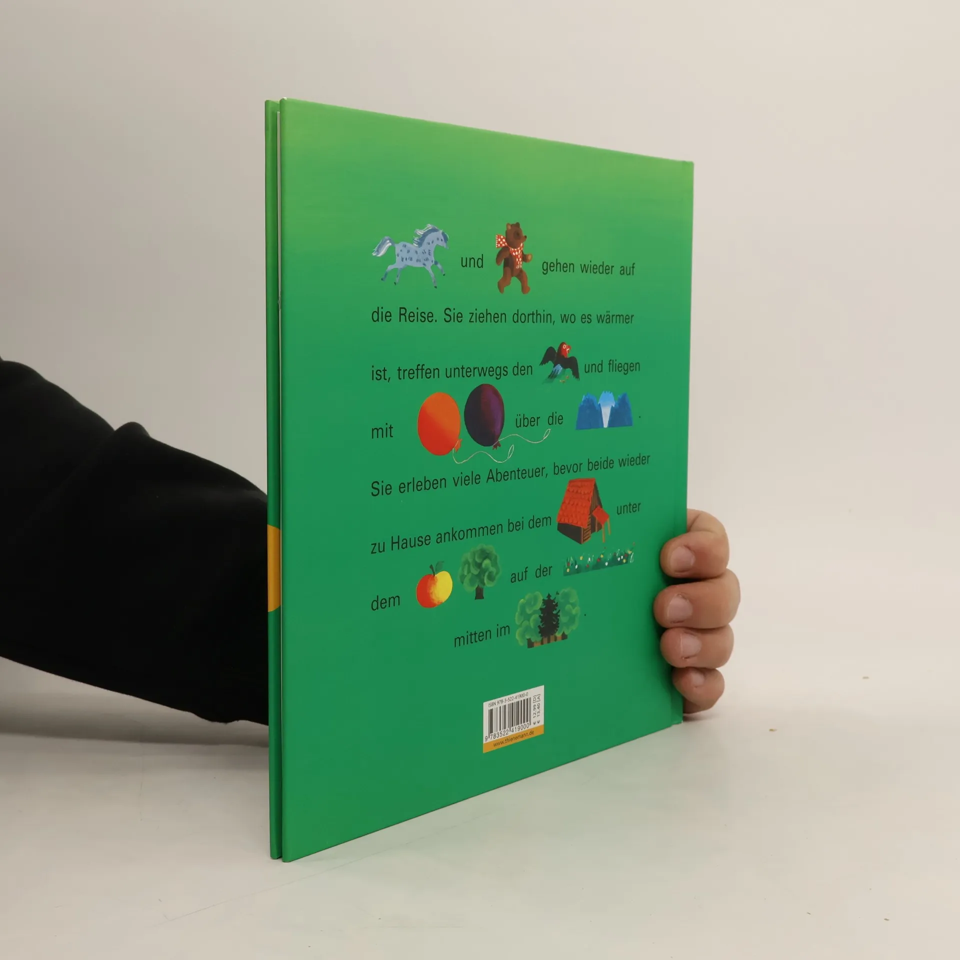Pony und Bär frieren im Regen. Sie beschließen in den Süden zu ziehen. Auf ihrem Weg treffen sie den Papagei, der von einem Mann gefangen wurde. Pony und Bär verdienen mit allerlei Kunststücken Geld, bis sie den Papagei befreit haben. Der zeigt ihnen den Weg durch die Berge und durch die Wüste bis in den Urwald. Ab 4 Jahren