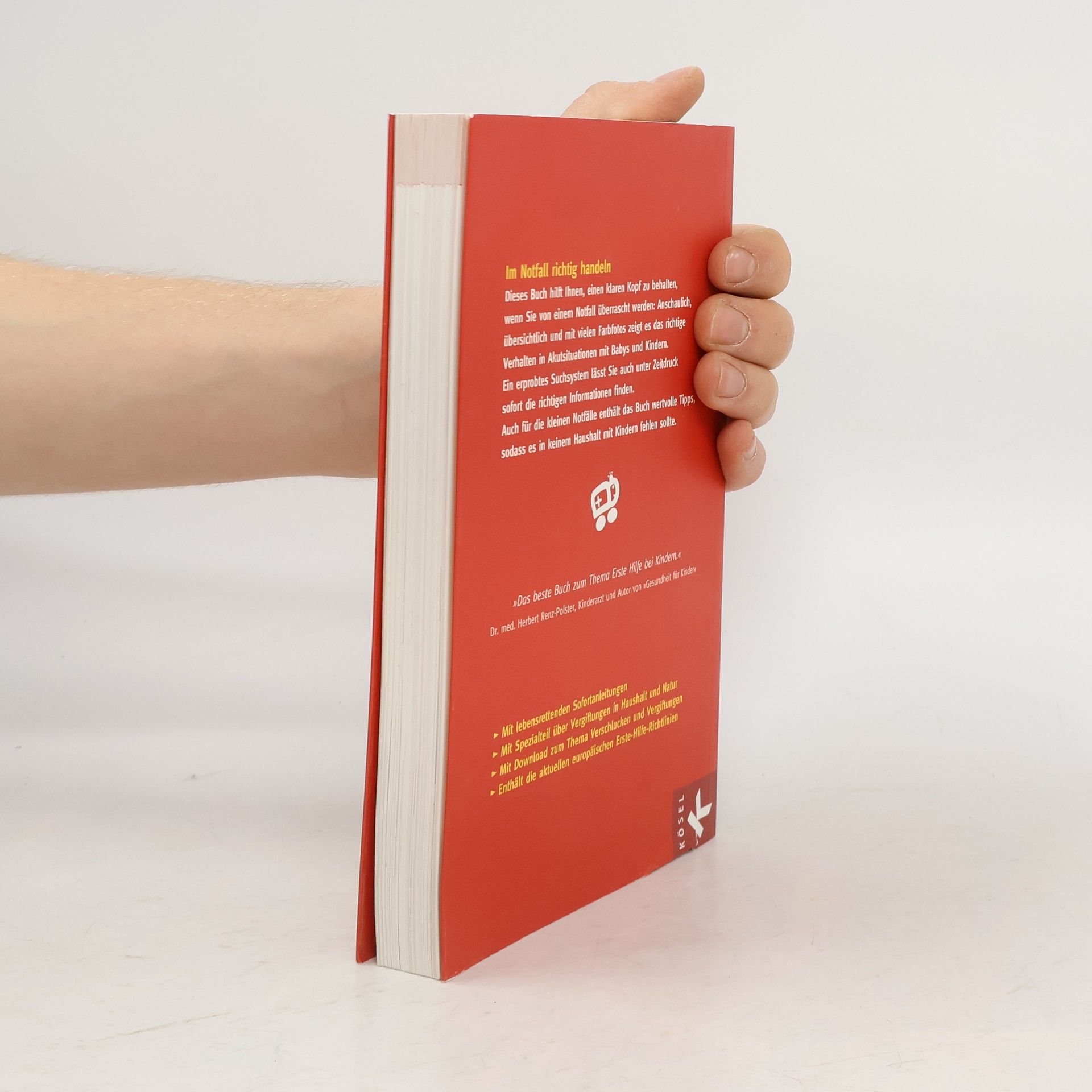 Im Notfall ist jede Sekunde kostbar. Dieses Buch hilft, schnell und richtig zu handeln: Knapp, übersichtlich und mit vielen Fotos zeigt es das richtige Verhalten bei Unfällen und in Akutsituationen. Ein erprobtes Suchsystem stellt sicher, dass sich die entscheidenden Informationen auch unter Zeitdruck sofort finden lassen. Die Verbindung von harter Notfallmedizin mit sanften Selbsthilfe-Maßnahmen und Erster Hilfe aus der Homöopathie entspricht den Bedürfnissen heutiger Eltern. Ein Muss für jeden KinderhaushaltKomplett aktualisiert: das erfolgreichste Erste-Hilfe-Buch für Kinder jetzt durchgehend vierfarbigEin Spezialteil über Giftpflanzen und Vergiftungen im Haushalt macht das Buch unverzichtbar für den Alltag mit Kindern.