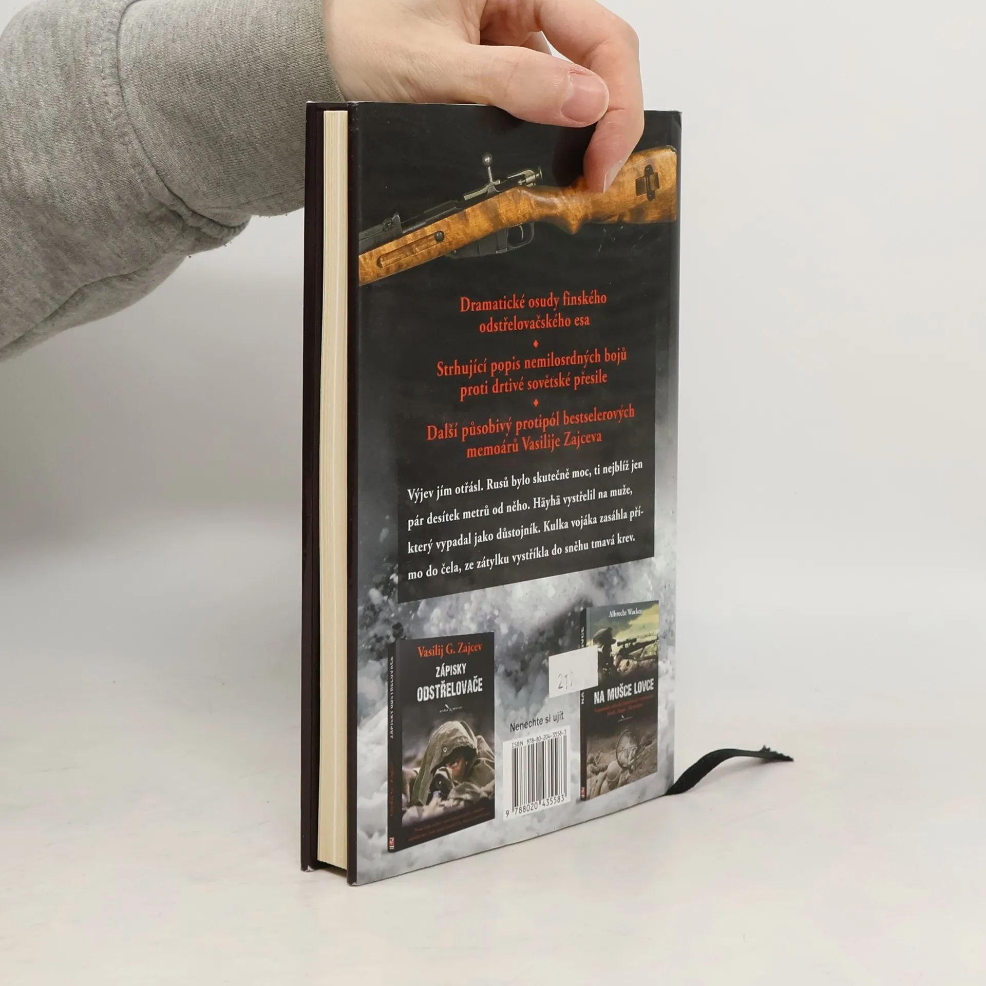 Životní příběh legendárního finského odstřelovače Sima Häyhäho, nenápadného, drobného chlapíka, který za Zimní války se Sovětským svazem výrazně zasáhl do těžkých bojů o řeku Kollaa. Jeho přesný, takřka neomylný střelecký um budil v řadách nepřítele oprávněnou hrůzu a vysloužil mu přezdívku Bílá smrt. Svými více než 500 prokázanými zásahy se zařadil mezi nejúspěšnější odstřelovače všech dob. Kniha se také dílem zabývá osudy dalších pozoruhodných postav, majících významný podíl na tom, že se v klimaticky náročných bojových podmínkách podařilo s vynaložením nadlidského úsilí zastavit postup agresora, a zachovat tak nezávislost Finska. V závěru se autor zamýšlí nad historickou i současnou úlohou odstřelovačů a jejich postavením v očích veřejnosti. Pozn. V knize je 16 stran obrazové přílohy.