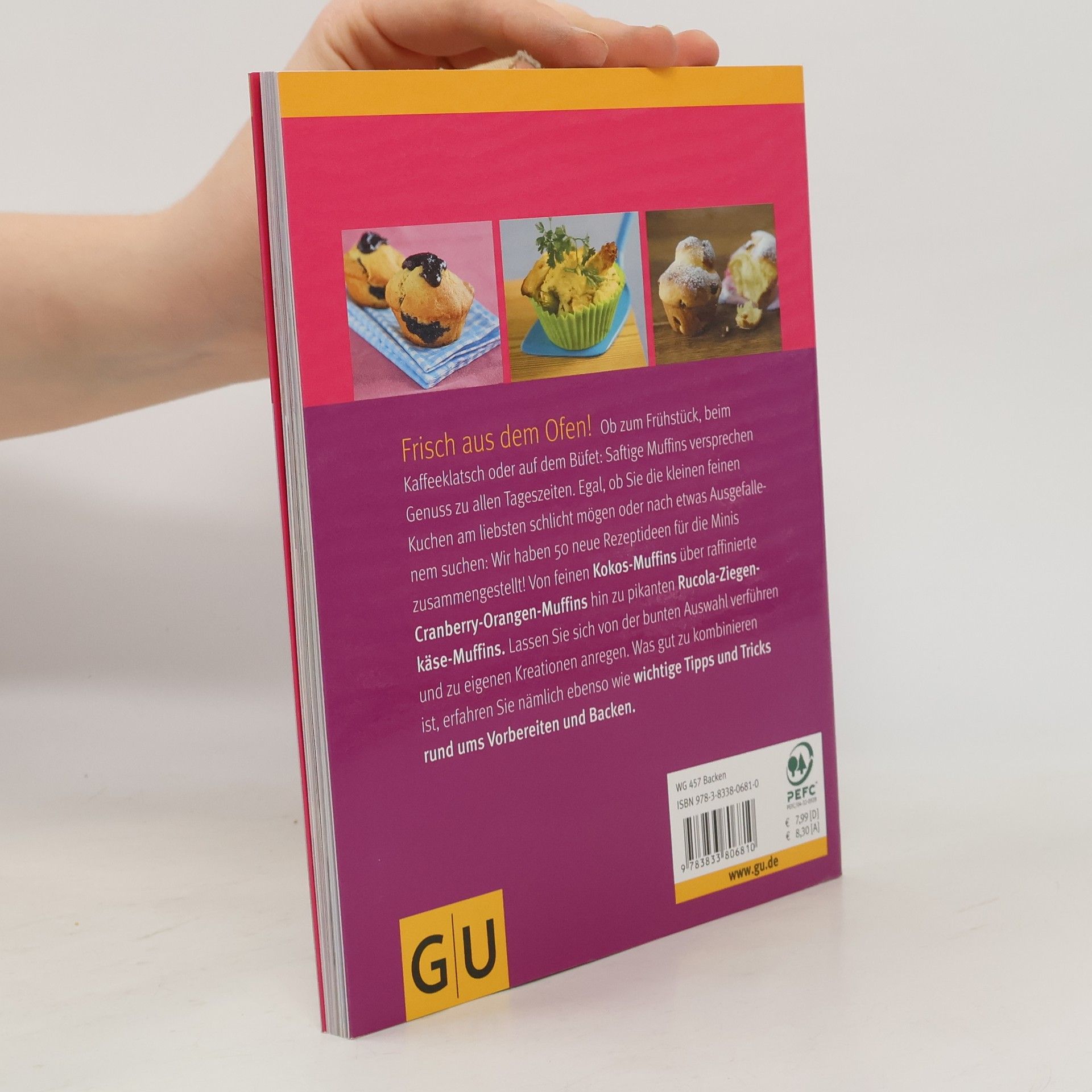 Muffins sind ein echtes Dauerbrennerthema. Drum haben wir den Ofen wieder angeheizt und herausgekommen sind 50 brandheiße neue Muffinskreationen! Muffins sind einfach wunderbar: Der Teig ist schnell gerührt und die Küchlein fix gebacken. Ob süß oder pikant - Muffins gehören heute einfach zu jedem Kindergeburtstag und zieren Brunchbüfett und Kaffeetafel. Die Kombinationsmöglichkeiten der Zutaten sind endlos: Ob Orangen-Chili-Muffins, Weiße Schoko-Beeren-Muffins oder trendige Rucola-Ziegenkäse-Muffins - für jeden gibt es das passende Lieblingsmuffin! Noch mehr Muffins mit der cleveren Zutaten-Kombi-Tabelle, außerdem Warenkunde, Backtipps, Grundrezept und Deko.