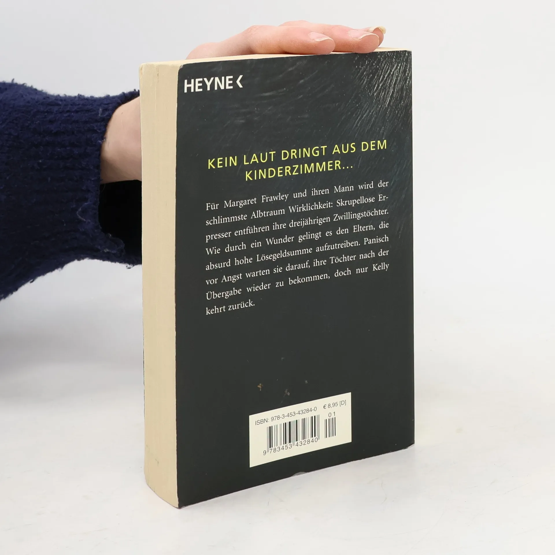 Kein Laut drang aus dem Kinderzimmer … Für Margaret Frawley wird der schlimmste Albtraum wahr: Skrupellose Erpresser entführen ihre dreijährigen Zwillingstöchter. Nach einer dramatischen Geldübergabe kommt eine Tochter frei, die andere aber sei gestorben, heißt es. Doch Margaret will nicht an den Tod ihres Kindes glauben.Margaret Frawley ist mit ihrem Mann Steve auf einem Empfang, als das Schreckliche passiert: Zwei Männer dringen in ihr Haus ein, schlagen die Babysitterin nieder und rauben die Zwillingstöchter des Paares. Auf dem Kinderbettchen hinterlassen sie eine Lösegeldforderung über eine immens hohe Summe. Die Polizei tappt komplett im Dunkeln, aber es gibt einen Lichtblick: Die Eltern schaffen es tatsächlich, acht Millionen Dollar zusammenzubekommen. Vor Angst nahe am Nervenzusammenbruch wartet Margaret auf die Übergabe, doch nur ein Zwilling, Kelly, kehrt zurück. Die andere Tochter sei erkrankt und gestorben, lassen die Entführer wissen. Margaret ist hin und her gerissen zwischen Freude über Kellys Rückkehr und Verzweiflung über Kathys Tod. Doch mitten im Gedenkgottesdienst fängt Kelly zum ersten Mal seit ihrer Heimkehr wieder zu sprechen an: »Kathy hat so Angst vor der Frau! Mami, du musst sie auch heimholen.«