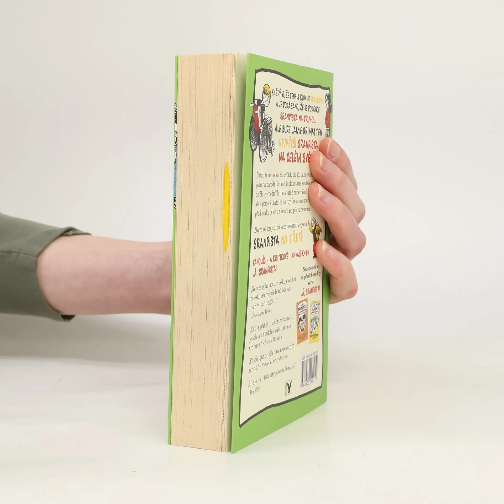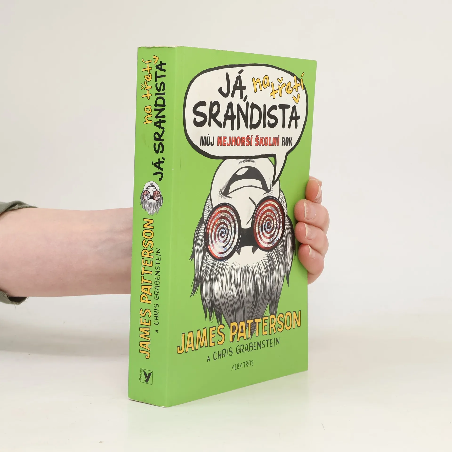 Třetí díl té nejsrandovnější série od Jamese Pattersona! Každý ví, že tenhle kluk je srandista. A je dokázáno, že je dokonce srandista na druhou. Ale bude Jamie Grimm ten největší srandista na celém světě? Pořád tomu nemůžu uvěřit, ale Já, Jamie Grimm, jedu na národní kolo celoplanetární soutěže srandistů do Hollywoodu! Tahle soutěž bude vážně náročná, ale s pomocí přátel (a hordy fanoušků) možná, doufám, před zraky celého národa na pódiu neumřu. Zbývá už jen jediná věc: dokázat, že jsem Srandista na třetí!