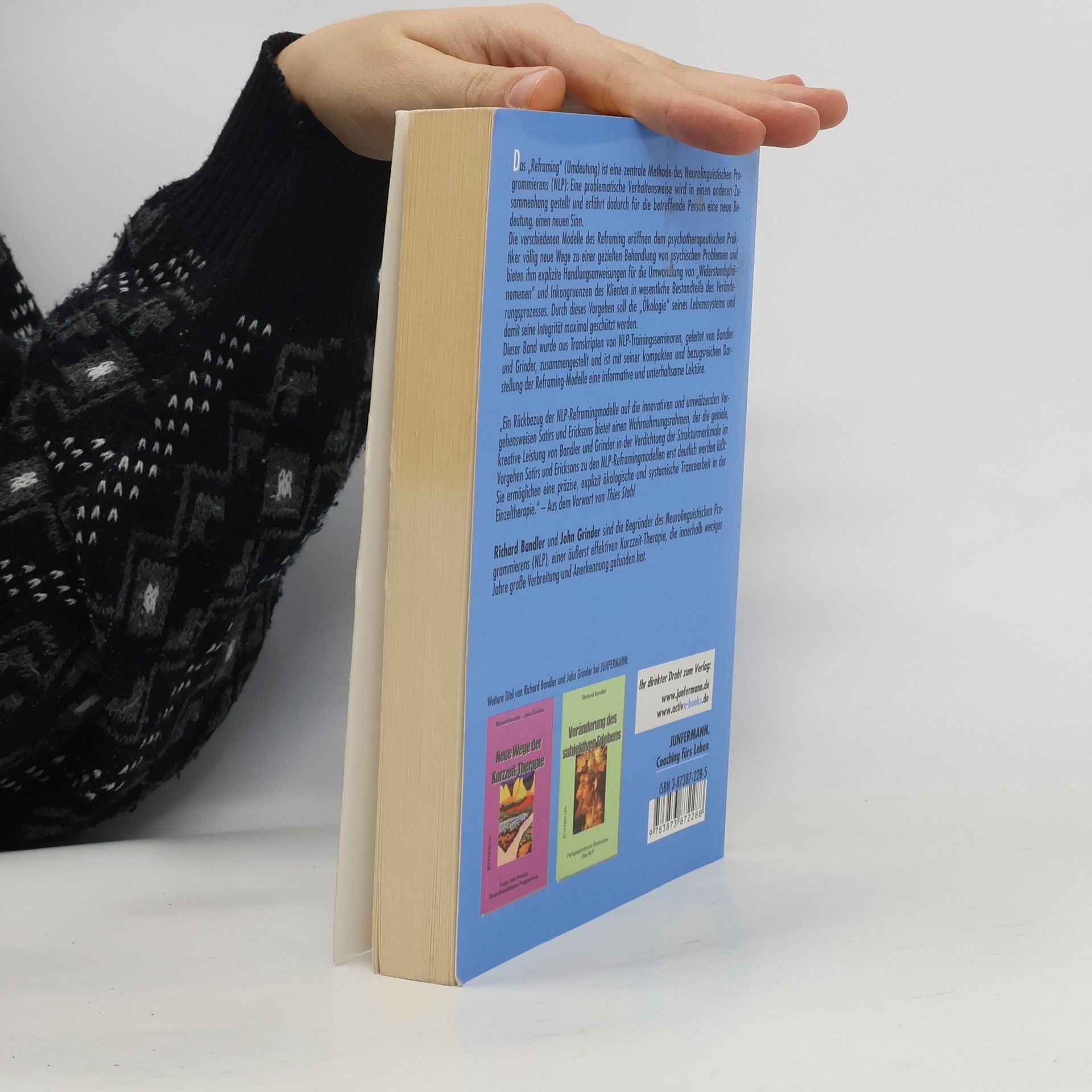 Das „Reframing“ ist eine zentrale Methode des Neurolinguistischen Programmierens (NLP): Eine problematische Verhaltensweise wird in einen anderen Zusammenhang gestellt und erfährt dadurch für die betreffende Person eine neue Bedeutung, einen neuen Sinn. In diesem Buch werden die verschiedenen Modelle des Reframing dargestellt; sie eröffnen dem psychotherapeutischen Praktiker völlig neue Wege zu einer gezielten Behandlung von psychischen Problemen. Dieser Band wurde aus Transkripten von NLP-Trainingsseminaren, geleitet von Bandler und Grinder, zusammengestellt und ist mit seiner kompakten und bezugsreichen Darstellung der Reframing-Modelle eine informative und unterhaltsame Lektüre. Ein NLP-Klassiker in neuer Übersetzung.