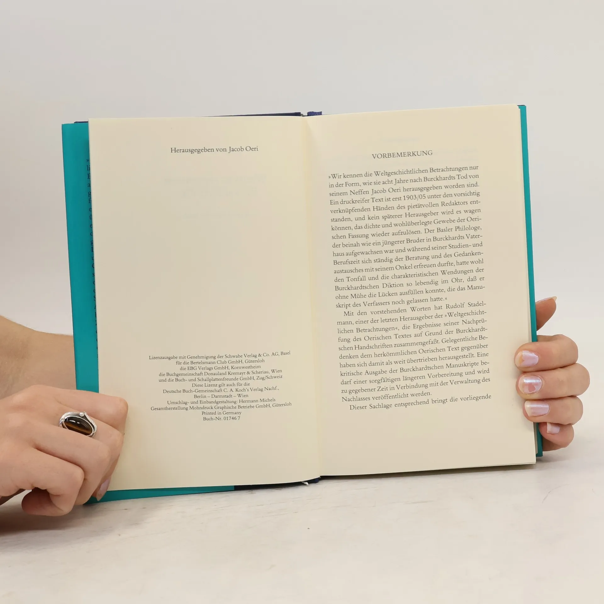 Weltgeschichtliche Bertrachtungen, Jacob Christoph Burckhardt