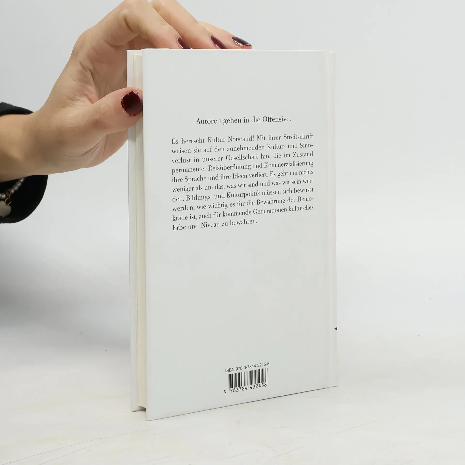 Gegen die allgemeine Verblödung: Autoren gehen in die Offensive Mit ihrer Streitschrift weisen sie auf den zunehmenden Kultur- und Sinnverlust unserer Gesellschaft hin, die im Zustand permanenter Reizüberflutung und Kommerzialisierung ihre Sprache und ihre Ideen verliert. Es geht um nicht weniger als um das, was wir sind und was wir sein werden. Es herrscht Kultur-Notstand: Es muss doch möglich sein, die Kultur zu retten und die Verblödung der Republik aufzuhalten! Bildungs- und Kulturpolitik müssen sich bewusst werden, wie wichtig es für die Bewahrung der Demokratie ist, nachhaltig auch für kommende Generationen kulturelles Erbe und Niveau zu bewahren. Autoren über die Veränderungen der Literaturlandschaft: mit Essays u. a. von Tanja Dückers, Gert Heidenreich, Sylvia Kabus, Steffen Kopetzky, Dagmar Leupold, Burkhard Spinnen, Arwed Vogel, Feridun Zaimoglu und Juli Zeh