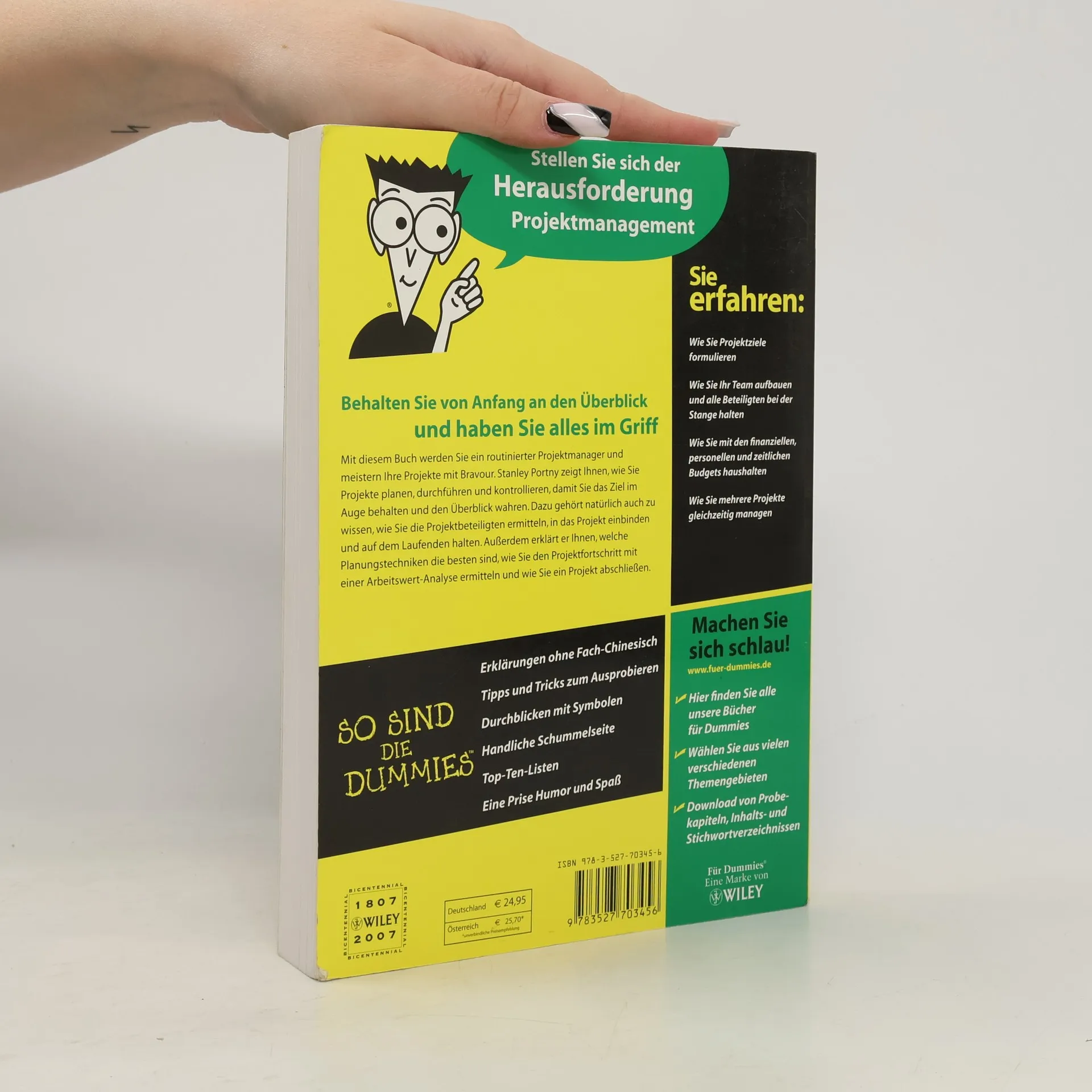 Vor einem liegt nicht nur ein bislang unüberschaubares Projekt, sondern schon eine Ahnung hinsichtlich all der Probleme, die mit ihm einhergehen könnten: wer kennt das nicht? In „Projektmanagement für Dummies“ zeigt Stanley Portny, wie Projektmanagement richtig funktioniert, wenn man weiß, worauf zu achten ist. Er erklärt, wie man Projekte richtig plant, durchführt und kontrolliert, damit man die Ziele nicht aus den Augen verliert und den Überblick behält. Dazu gehört natürlich auch zu wissen, was ein gutes Projektteam ausmacht und wie man die Leute bei der Stange hält. Dabei geht Portny auf die neuesten Projektmanagement-Techniken ein und stellt verschiedene Computerprogramme vor, die das Projektmanagement unterstützen und wesentlich erleichtern. Mit diesem Buch wird jeder zu einem routinierten Projektmanager, der seine Projekte mit Bravour meistert.