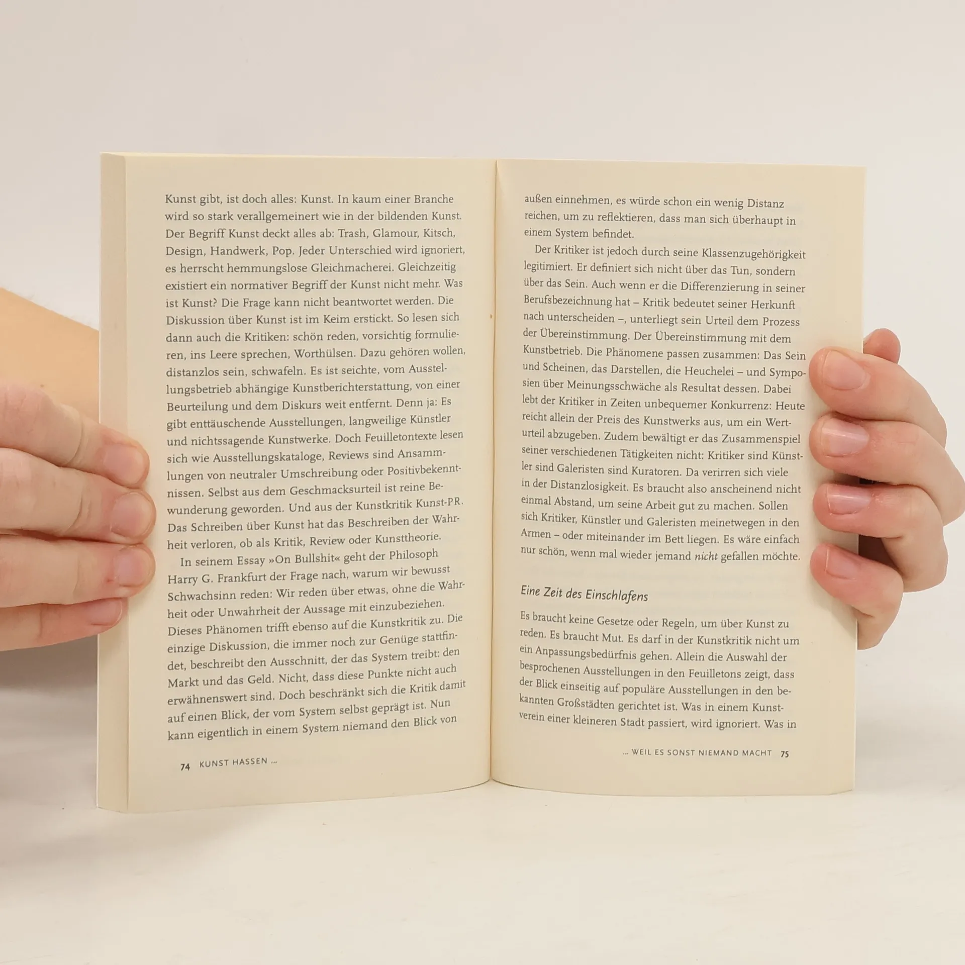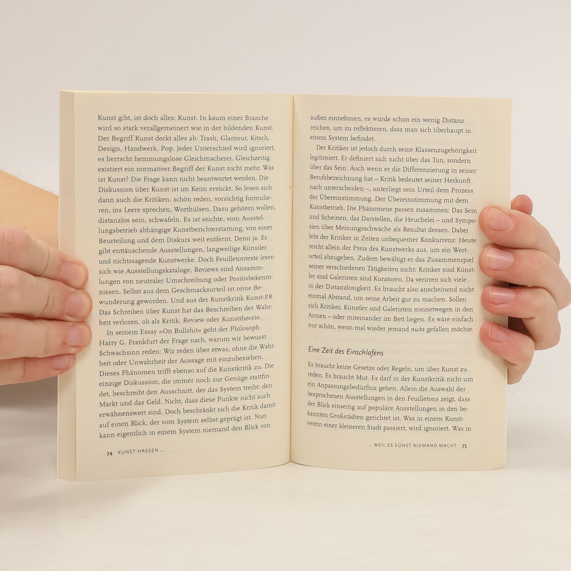 Niemand traut sich mehr, die Frage zu stellen, was gute Kunst ausmacht. Nicole Zepter zeigt mit lustvoller Polemik, dass die Ablehnung von Kunst heutzutage ein Tabu ist, und sie nennt die Gründe, warum das System so festgefahren ist. »Kunst hassen« geht direkt an den falschen Respekt, der den Betrachter für dumm erklärt. Wieso müssen wir Kunst bewundern, die uns langweilt? Weshalb sind viele bekannte Künstler sofort bedeutend? Und warum glauben wir überhaupt einem Museum? Dieses Buch zeigt, wie der moderne Kunstbetrieb darüber bestimmt, was wir heute als Kultur wahrnehmen – und warum wir uns damit abfinden. Es beschreibt das System hinter den Besuchermassen erfolgreicher Ausstellungen und hochgehandelten Kunststars. Es zeigt, wie unser Vertrauen in Autorität, der Glaube an das Kunstgenie und ein kleiner Kreis von Galeristen und Sammlern uns anleiten, das als Kunst zu bewerten, was uns vorgesetzt wird. »Kunst hassen« ermächtigt den kunstinteressierten Laien oder Experten, seine Ehrfurcht vor der Kunst abzulegen, um sich ein eigenes Urteil zu bilden. Es erzählt von einer enttäuschten Liebe, die ihre Objekte der Begierde zurückgewinnen will.
