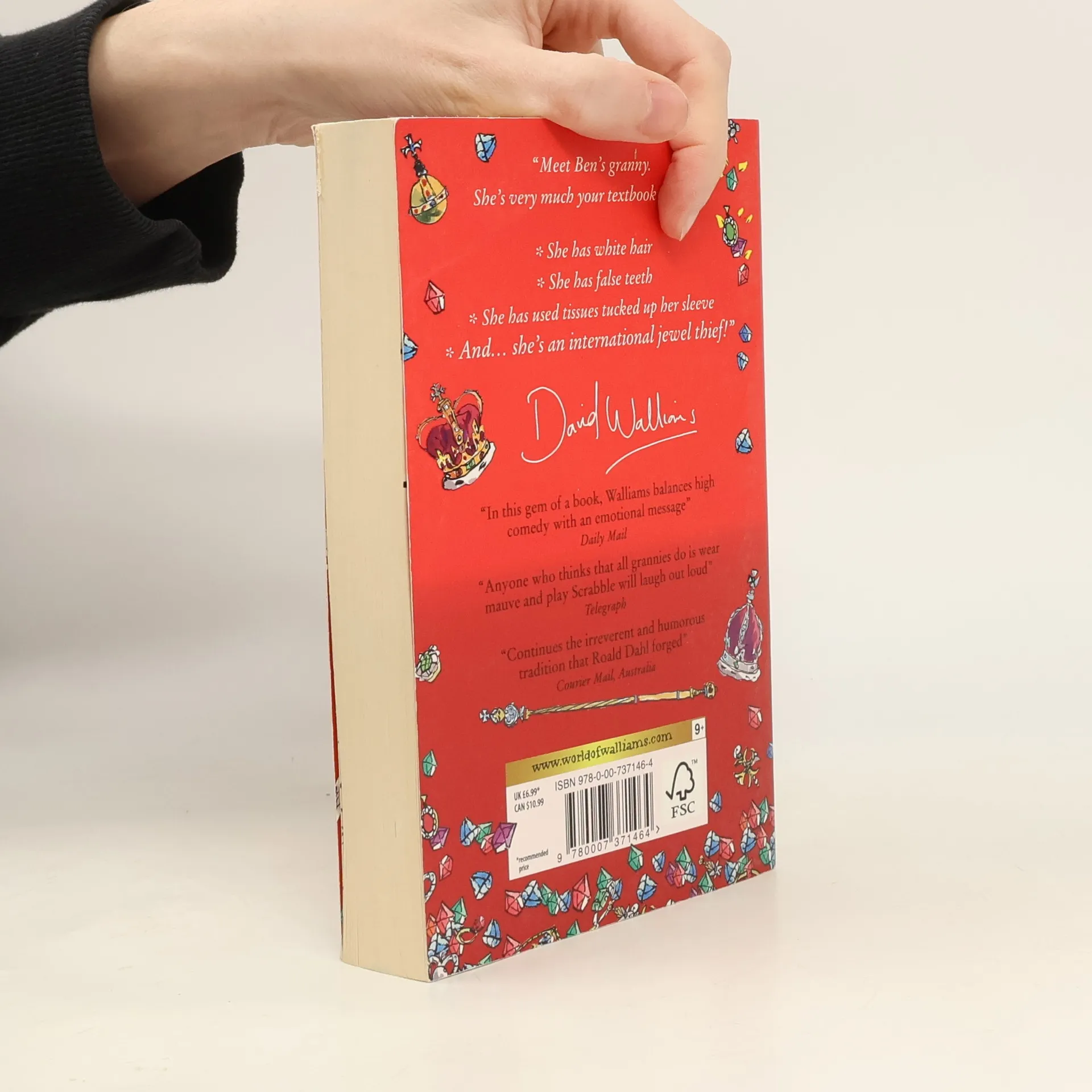 A story of prejudice and acceptance, funny lists and silly words, this new book has all the hallmarks of David's previous bestsellers.Our hero Ben is bored beyond belief after he is made to stay at his grandma's house. She's the boringest grandma ever: all she wants to do is to play Scrabble, and eat cabbage soup. But there are two things Ben doesn't know about his grandma.1) She was once an international jewel thief.2) All her life, she has been plotting to steal the crown jewels, and now she needs Ben's help...