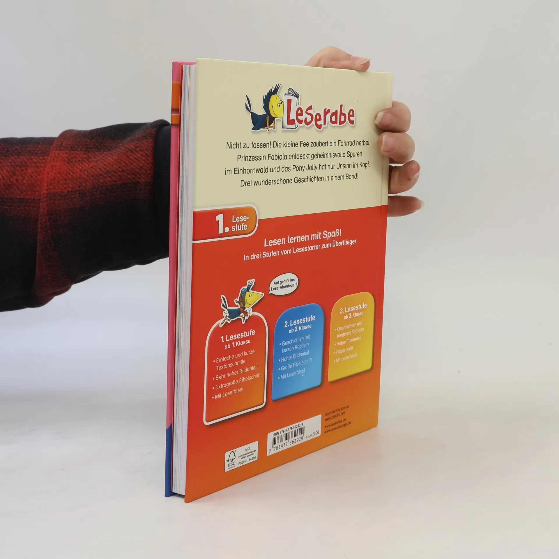 Prinzessin Fabiola entdeckt geheimnisvolle Spuren, die kleine Fee zaubert ein Fahrrad herbei und Marie fiebert dem großen Reitturnier entgegen. Drei zauberhafte Geschichten in einem Band! Lesen lernen wie im Flug! Die Kinderbücher der Reihe Leserabe - 1. Lesestufe wurden mit Pädagogen entwickelt und richten sich an Leseanfänger ab der 1. Klasse. Kurze Texte in großer Fibelschrift sichern erste Leseerfolge und steigern die Lesekompetenz von Mädchen und Jungen ab 6 Jahren. Empfohlen von Stiftung Lesen, gelistet bei Antolin. Weitere Informationen auf leserabe. de.