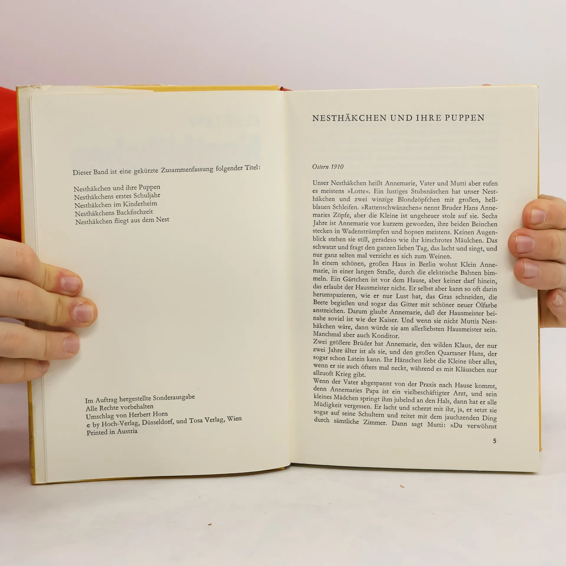 Sammelband mit den Geschichten: - Nesthäkchen und ihre Puppen - Nesthäkchen erstes Schuljahr - Nesthäkchen im Kinderheim - Nesthäkchen Backfischzeit - Nesthäkchen fliegt aus dem Nest