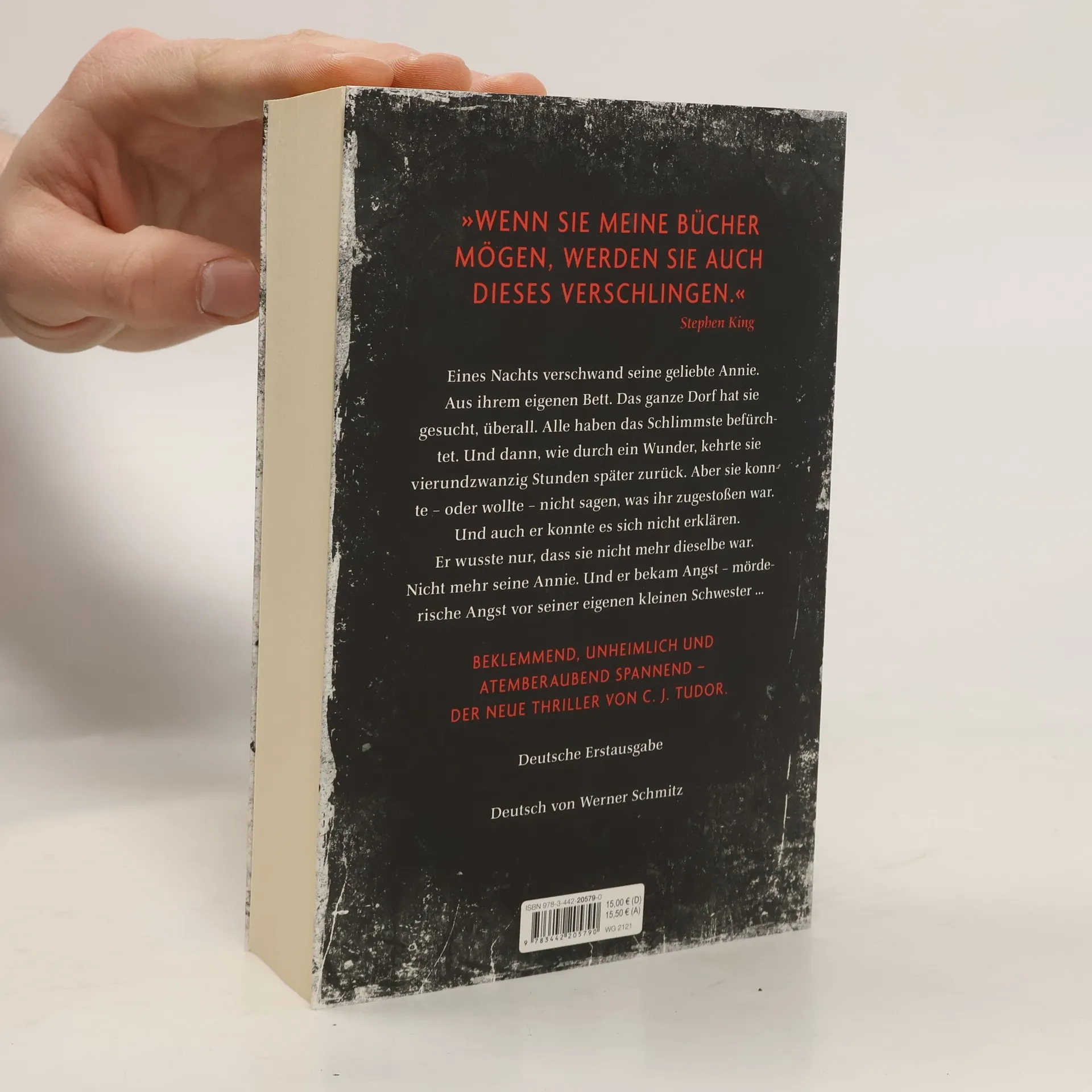Eines Nachts verschwand seine geliebte Annie. Aus ihrem eigenen Bett. Das ganze Dorf hat sie gesucht, überall. Alle haben das Schlimmste befürchtet. Und dann, wie durch ein Wunder, kehrte sie vierundzwanzig Stunden später zurück. Aber sie konnte – oder wollte – nicht sagen, was ihr zugestoßen war. Und auch er konnte es sich nicht erklären. Er wusste nur, dass sie nicht mehr dieselbe war. Nicht mehr seine Annie. Und er bekam Angst - mörderische Angst vor seiner eigenen kleinen Schwester ... Beklemmend, unheimlich und Atem beraubend spannend – der neue Thriller von C. J. Tudor.