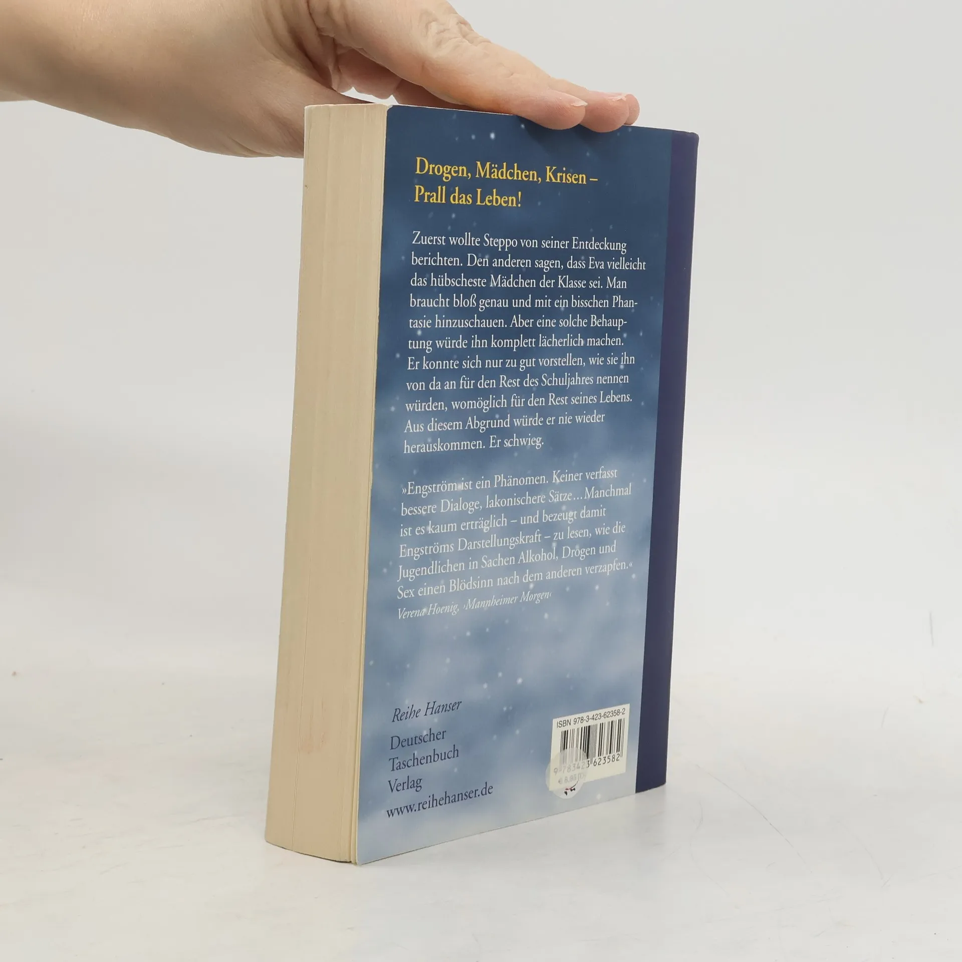 Drogen, Mädchen, Krisen - Prall das Leben! Es ist, als seien um Steppo herum alle mehr oder weniger bekloppt. Dick, der unbedingt in einer Band spielen will. Håkan, der jeden Blödsinn macht, um seinem Bruder zu imponieren. Tahsin, in die Steppo verliebt ist, steht aber auf Ältere. Stress! Aber noch keine echte Katastrophe. Die beginnt erst, als er und Håkan ein geklautes Auto zu Schrott fahren - das Auto gehört einem Dealer. Wie sie aus dem Schlamassel wieder herauskommen sollen? Keine Ahnung.