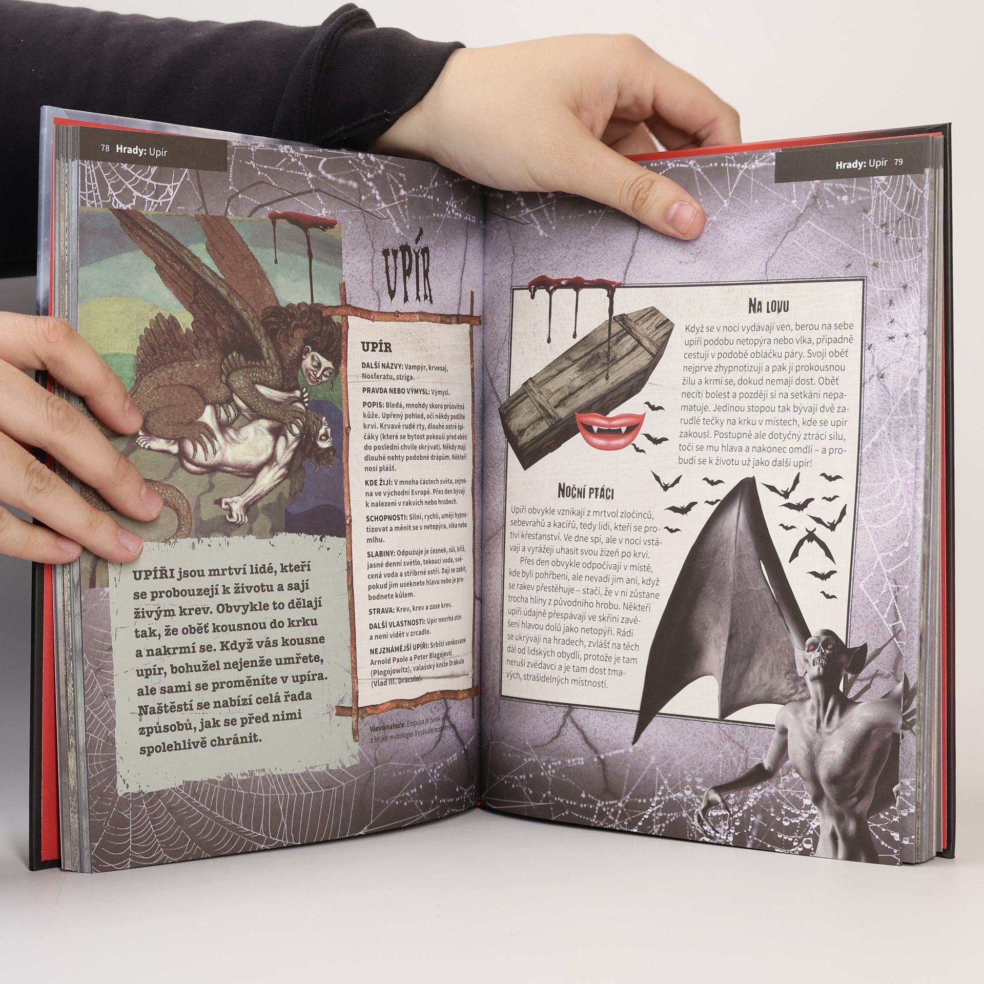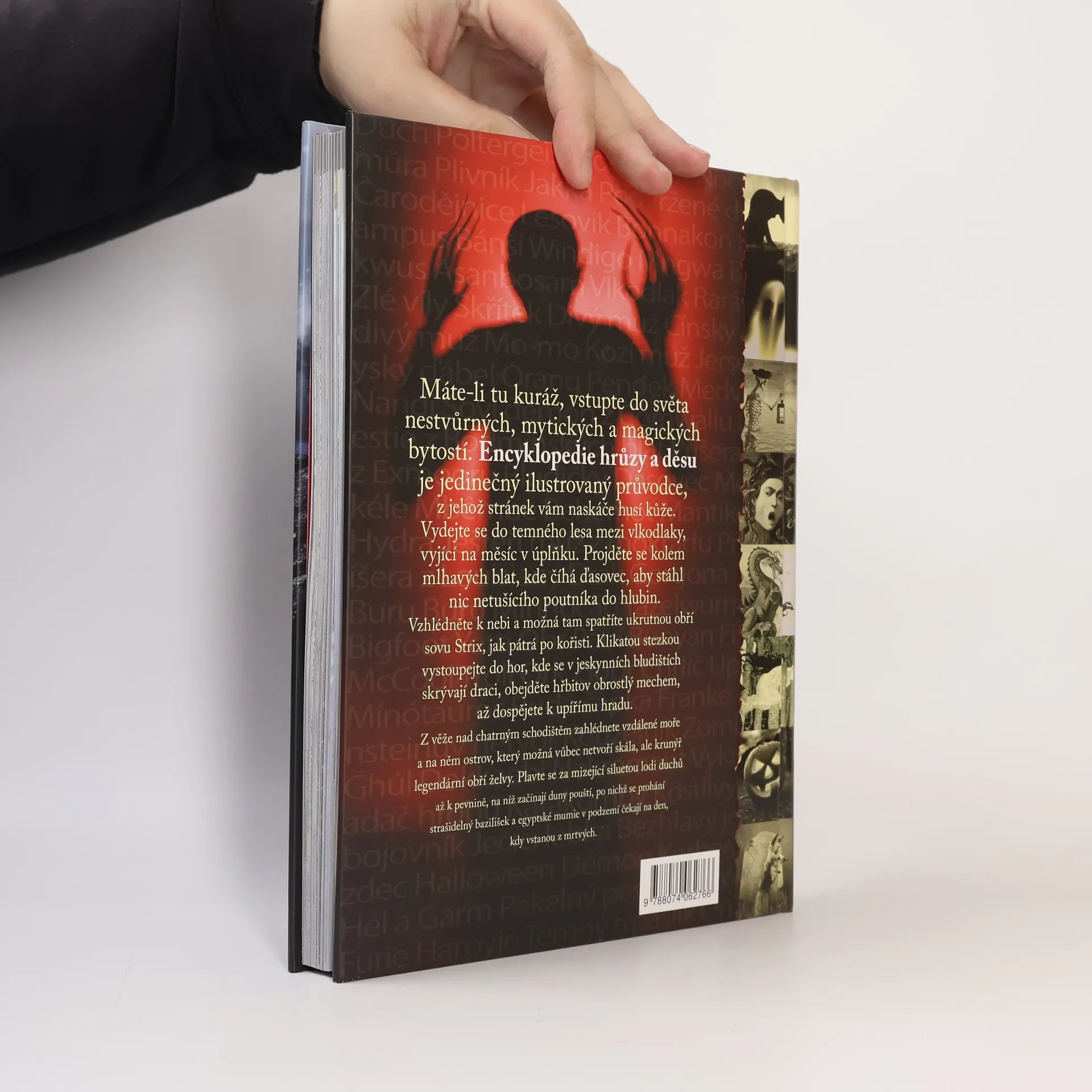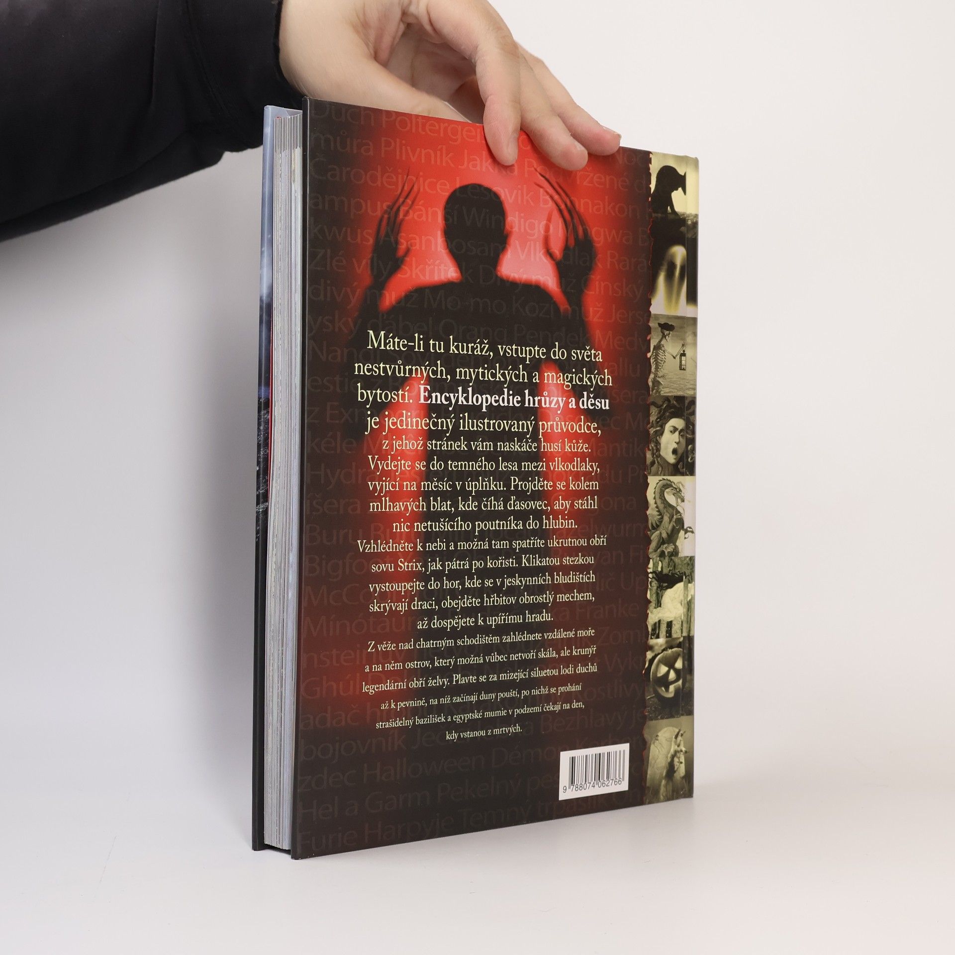 Máte-li kuráž, vstupte do světa nestvůrných, mytických a magických bytostí. ENCYKLOPEDIE HRŮZY A DĚSU vás provede fascinující říší, kde v temném lese vyjí vlkodlaci, nad hlavami vám krouží soví démon, v jeskynních bludištích číhají draci a nočním hřbitovem bloumá hladový ghúl. Setkáte se s bezhlavým jezdcem i ohavnou Scyllou, prozkoumáte upíří hrad a z okna zahlédnete ostrov, který vlastně vůbec netvoří skála, ale krunýř legendární obří želvy. Budete se plavit za mizející siluetou lodi duchů až k dunám pouští, po nichž se prohání strašidelný bazilišek a egyptské mumie v podzemí čekají na den, kdy vstanou z mrtvých. Tato překrásně ilustrovaná kniha je skvělým dárkem nejen pro ty, kdo se rádi bojí – ručíme vám za to, že se od ní nebudete moci odtrhnout!