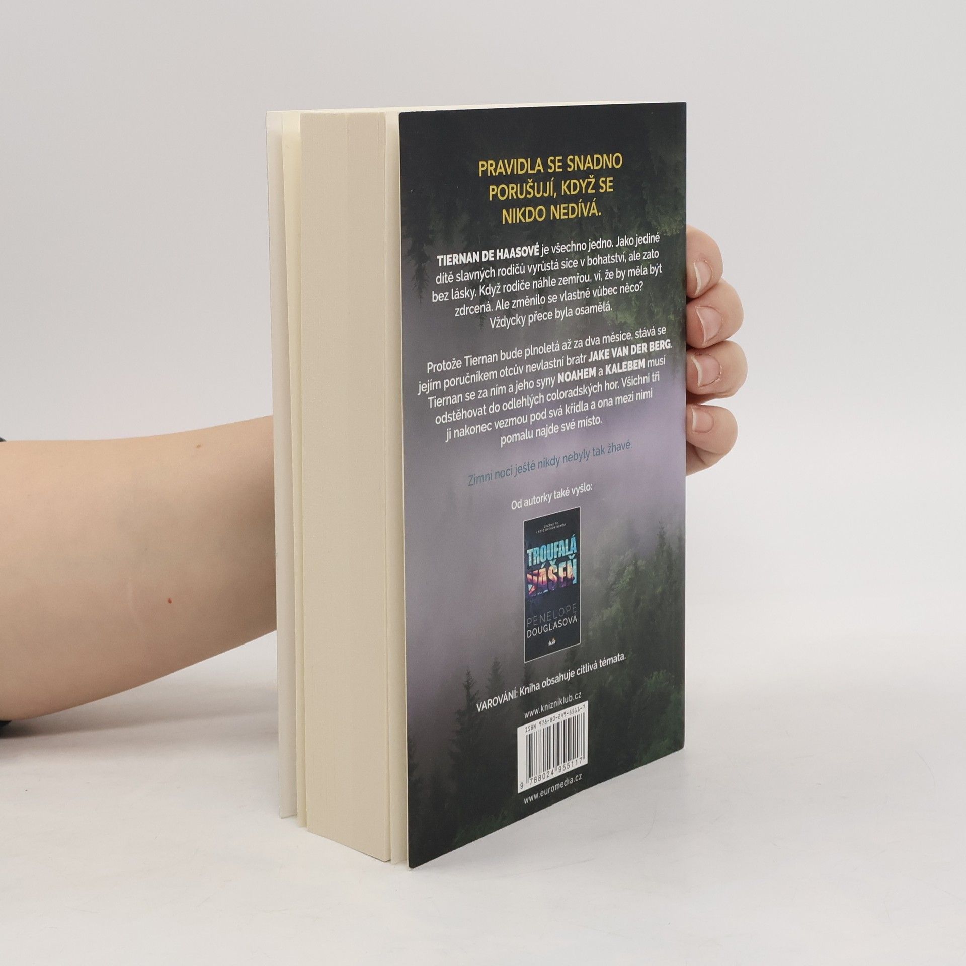 Tiernan de Haasové je všechno jedno. Jako jediné dítě slavných rodičů vyrůstá sice v bohatství, ale zato bez lásky. Když rodiče náhle zemřou, ví, že by měla být zdrcená. Ale změnilo se vlastně vůbec něco? Vždycky přece byla osamělá. Protože Tiernan bude plnoletá až za dva měsíce, stává se jejím poručníkem otcův nevlastní bratr Jake Van der Berg. Tiernan se za ním a jeho syny Noahem a Kalebem musí odstěhovat do odlehlých coloradských hor. Všichni tři ji nakonec vezmou pod svá křídla a ona mezi nimi pomalu najde své místo. Také si však uvědomí, že hranice se stírají a pravidla se snadno porušují, když se nikdo nedívá. Jeden z nich ji má. Druhý ji chce. Ale on… On si ji nechá.