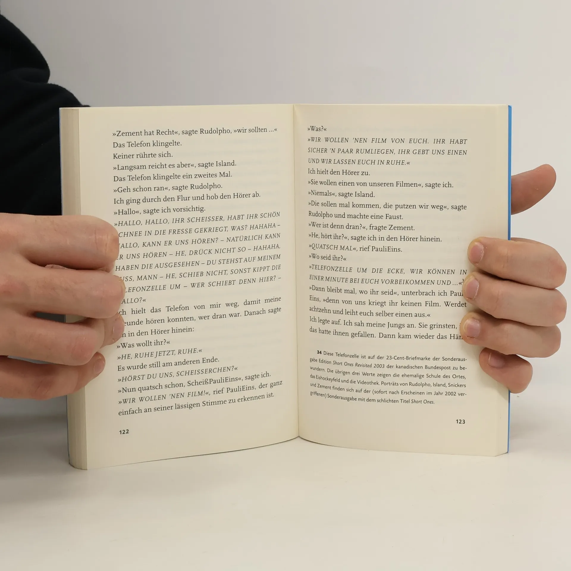 Rudolpho, Island, Snickers und Zement, so nennen sich vier Freunde aus einem kleinen Ort in Kanada. Sie leben inkognito, denn wenn jeder wüsste, wie sie richtig heißen, dann würde in ihrem Heimatort die Post abgehen. Sie sind nämlich die berühmte Kurzhosengang. Derart coole Jungs tragen natürlich keine kurzen Hosen. Wie die Gang dennoch zu ihrem Namen kam, dazu erzählt jedes Mitglied anlässlich eines Fernsehinterviews seine eigene Geschichte.
