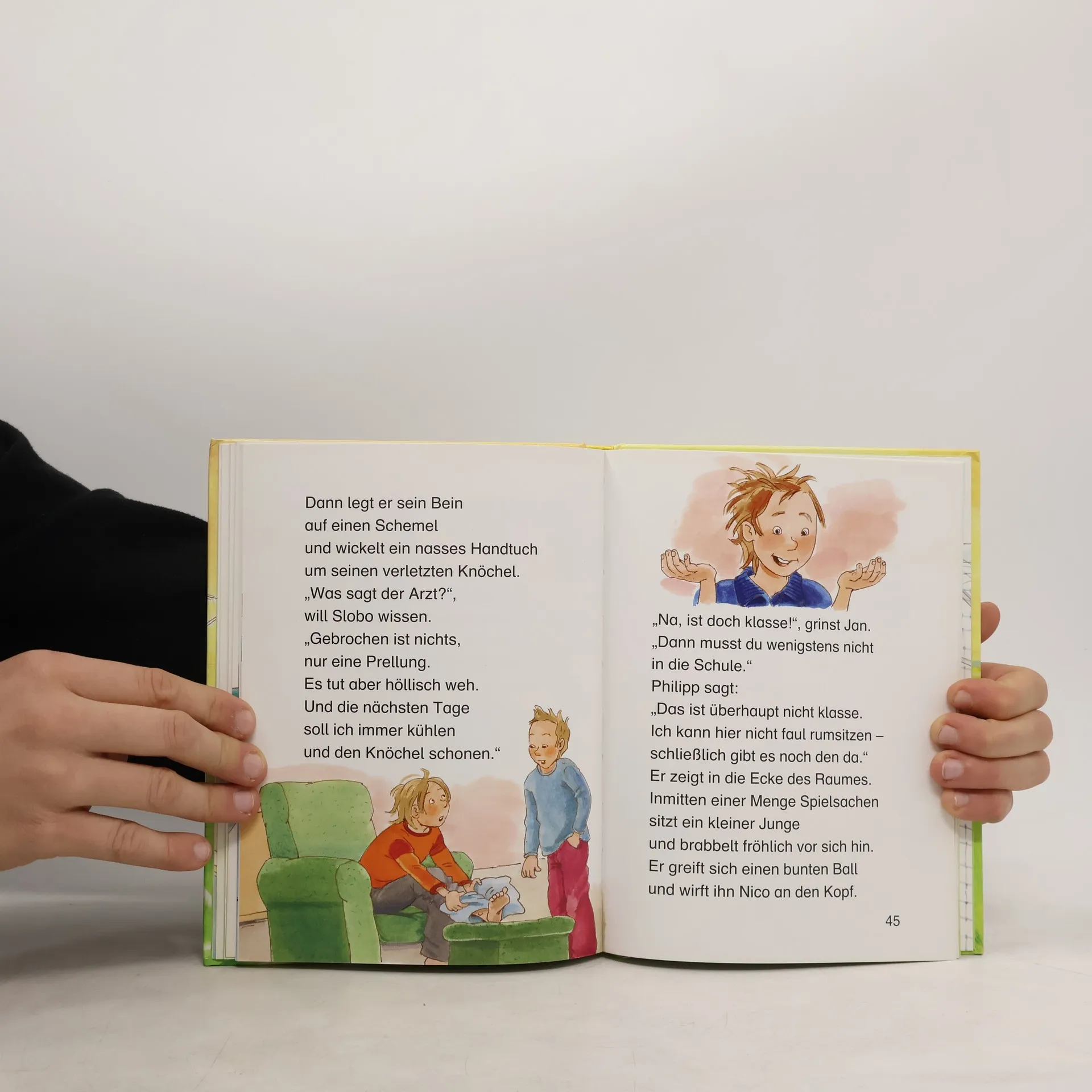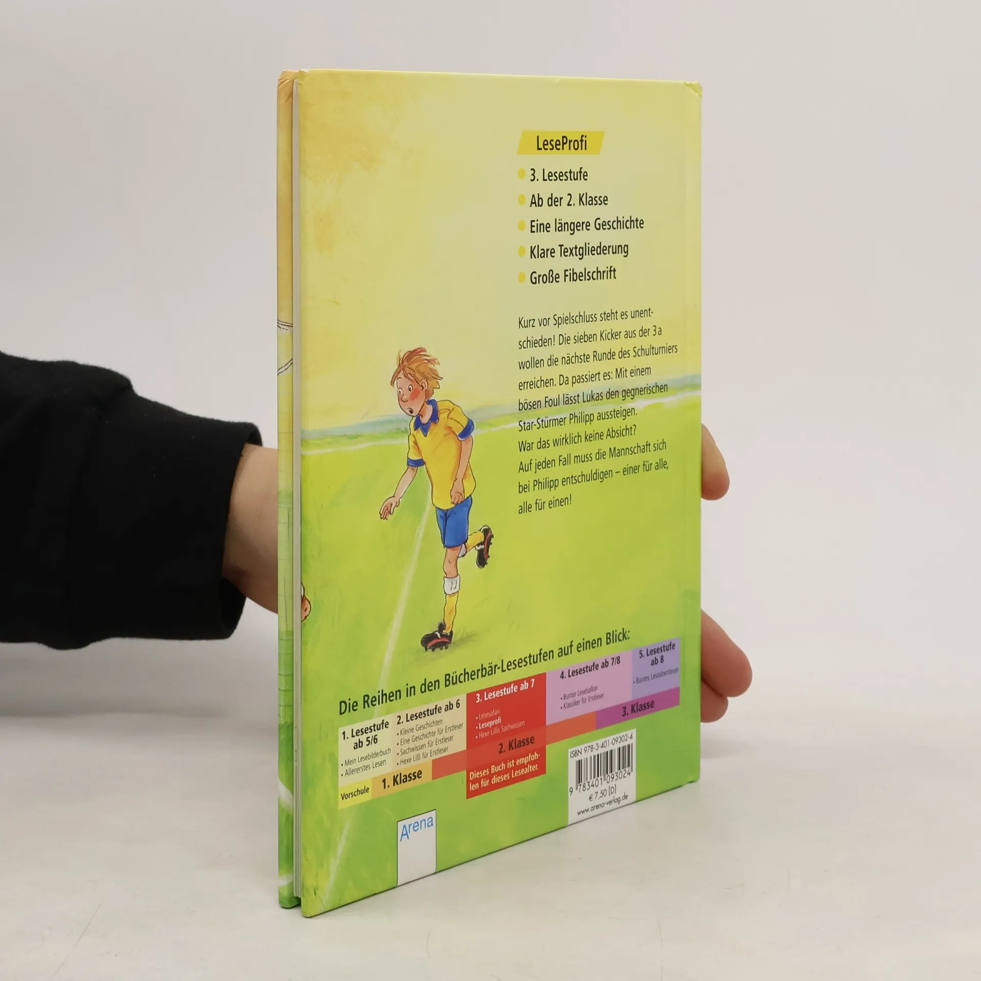 Kurz vor Spielschluss steht es unentschieden! Die sieben Kicker aus der 3a wollen die nächste Runde des Schulturniers erreichen. Da passiert es: Mit einem bösen Foul lässt Lukas den gegnerischen Star-Stürmer Philip aussteigen. War das wirklich keine Absicht? Auf jeden Fall muss die Mannschaft sich bei Philip entschuldigen - einer für alle, alle für einen!