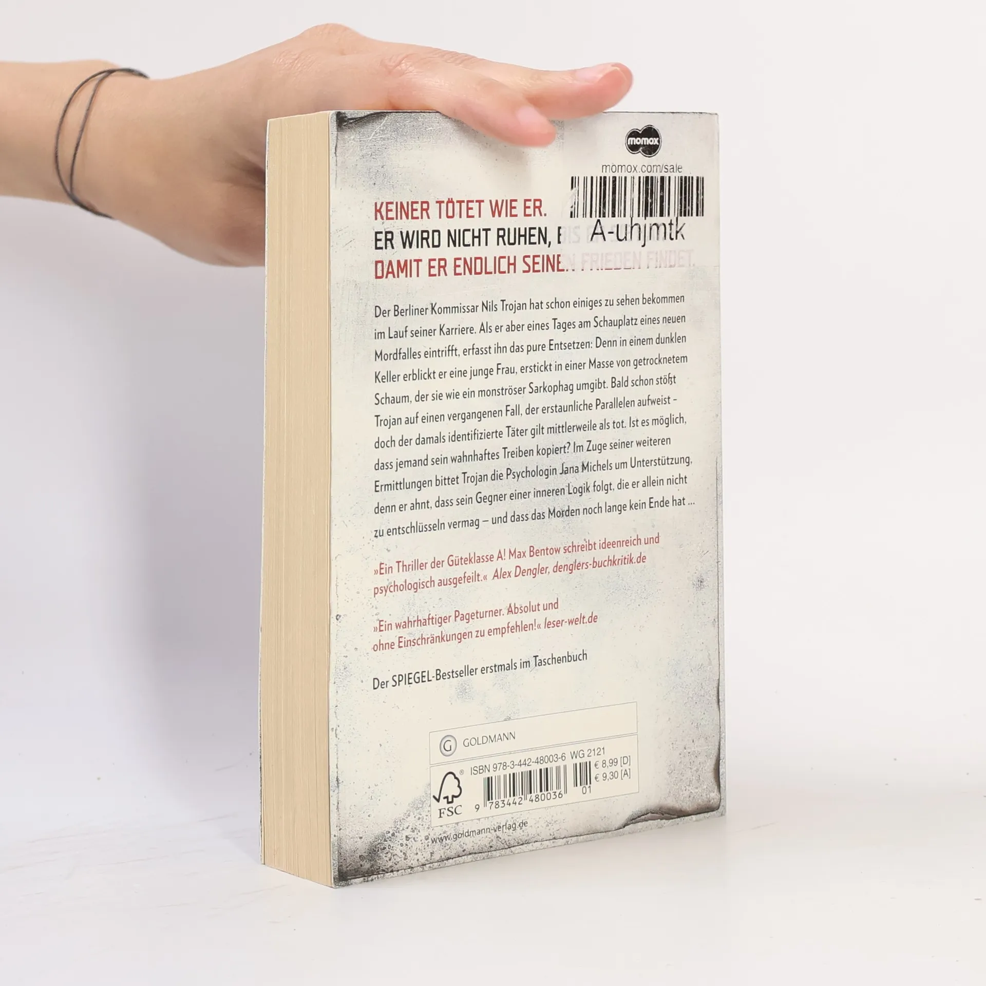 Keiner tötet wie er. Er wird nicht ruhen, bis er sie hat. Damit er endlich seinen Frieden findet Als der Berliner Kommissar Nils Trojan an den Schauplatz eines neuen Mordfalles gerufen wird, ist er zutiefst erschüttert von dem Anblick, der sich ihm bietet: Der Täter hatte eine junge Frau in den Keller gelockt und sie dort auf ungeahnte Weise ermordet – ihr Körper ist erstarrt in einem monströsen Sarkophag aus getrocknetem Schaum. Bei seiner Recherche stößt Trojan auf einen älteren Fall, der verblüffende Parallelen aufweist: Damals konnte die Puppenmacherin Josephin Maurer in letzter Sekunde aus einem Keller befreit werden, der Angreifer hatte bereits Spuren seiner makabren Handschrift auf ihrem Körper hinterlassen. Doch der als Täter identifizierte Karl Junker gilt inzwischen als tot – kann es sein, dass jemand ihn kopiert? Oder ist er doch noch am Leben, besessen davon, sein grausames Werk fortzusetzen?