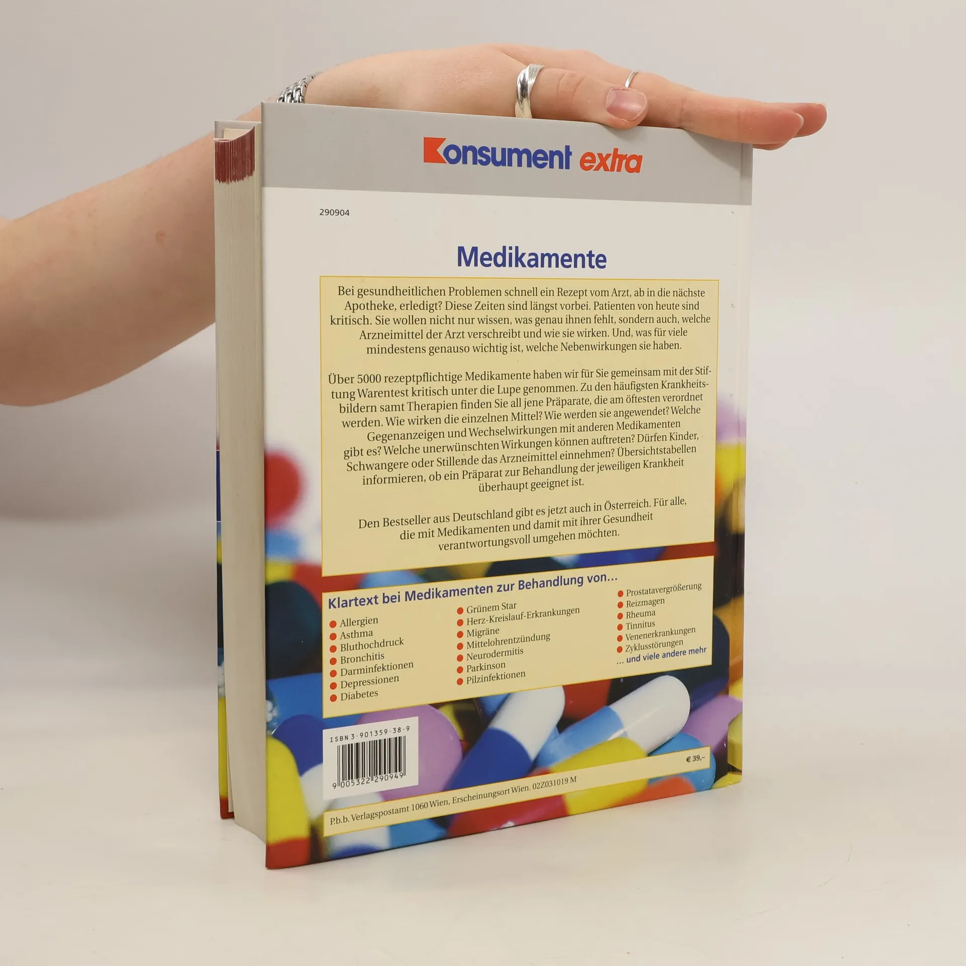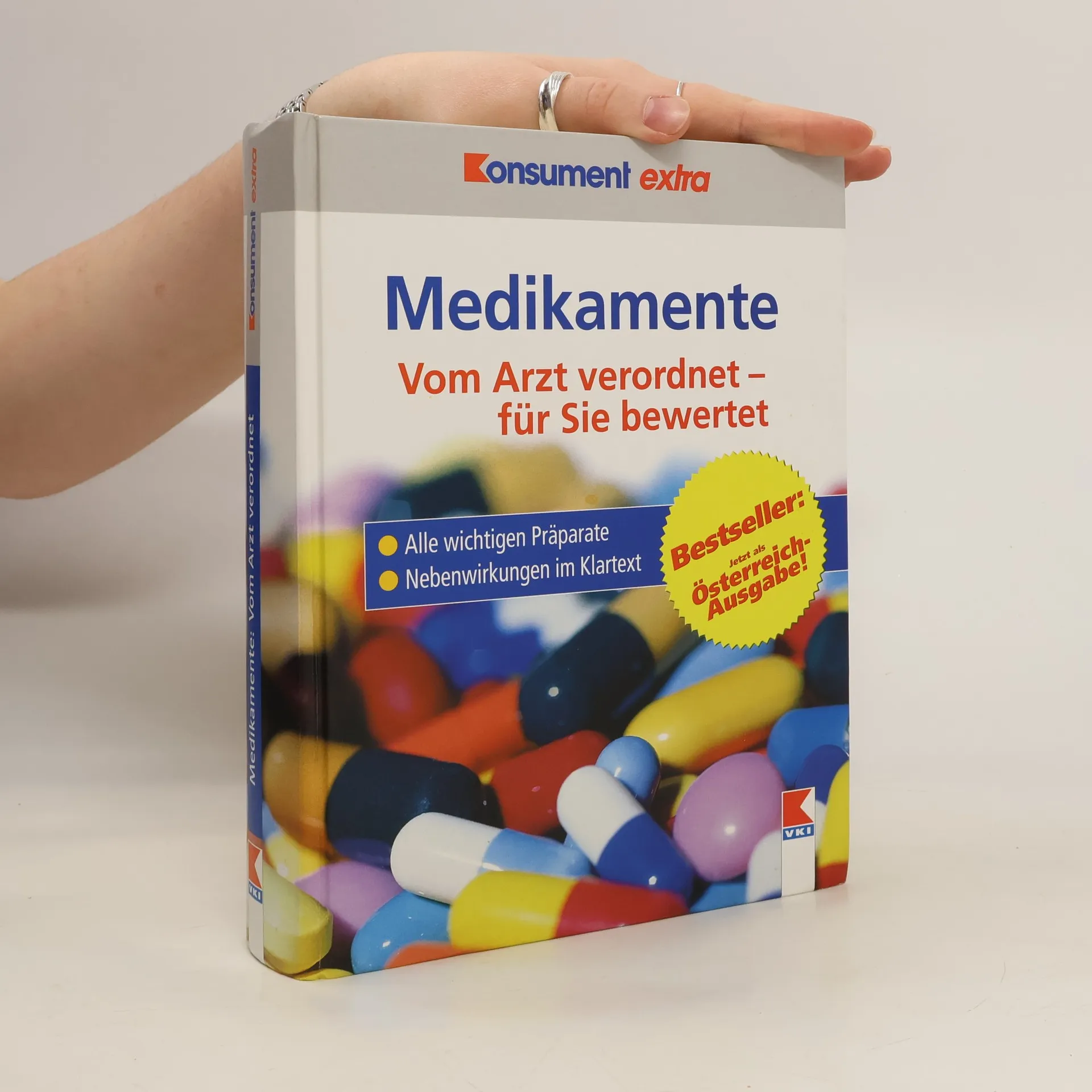Das Handbuch Medikamente jetzt als limitierte Sonderausgabe: 1500 Seiten, 7000 häufig verschriebene Medikamente im Test, Symptome und Ursachen zahlreicher Krankheitsbilder, die Beschreibung der Wirkstoffe, Bewertungen und Preise. Bei dem Preis gehört dieses umfassende Gesundheitsbuch unbedingt in die Hausbibliothek. Wenn ein Arzt Medikamente verordnet, fallen einem die wirklich wichtigen Fragen oft erst später ein. Dieses Buch bietet dann Hilfe, erklärt die Wirkweise und die Wechselwirkungen, gibt Hinweise zur Einnahme und vor allem: Die Experten der Stiftung Warentest sagen, ob das Medikament überhaupt wirksam und für die Therapie geeignet ist.