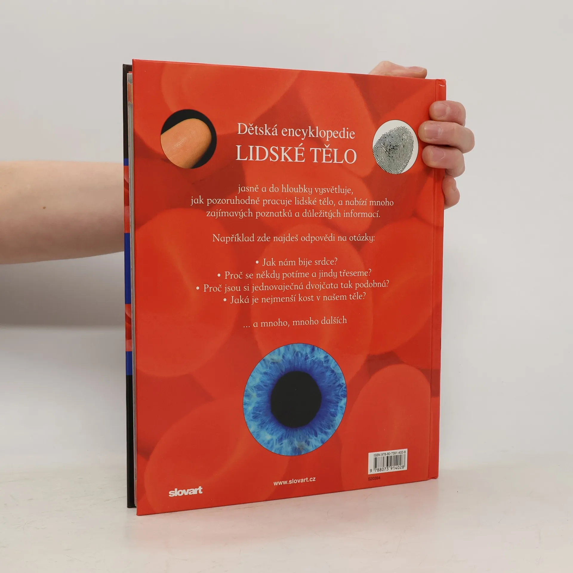 Bohatě ilustrovaná encyklopedie obsahuje skvělé fotografie a obrázky s přehlednými popisky, napsaná odborníkem a týmem poradců. Je rozdělená do osmi přehledných a obsahuje tato témata: Kůže, vlasy a nehty Srdce a krev Trávicí soustava Plíce a dýchání Kosti, klouby a svaly Mozek a nervy Rozmnožování Smysly Geny, dědičnost, DNA … a mnoho dalších.