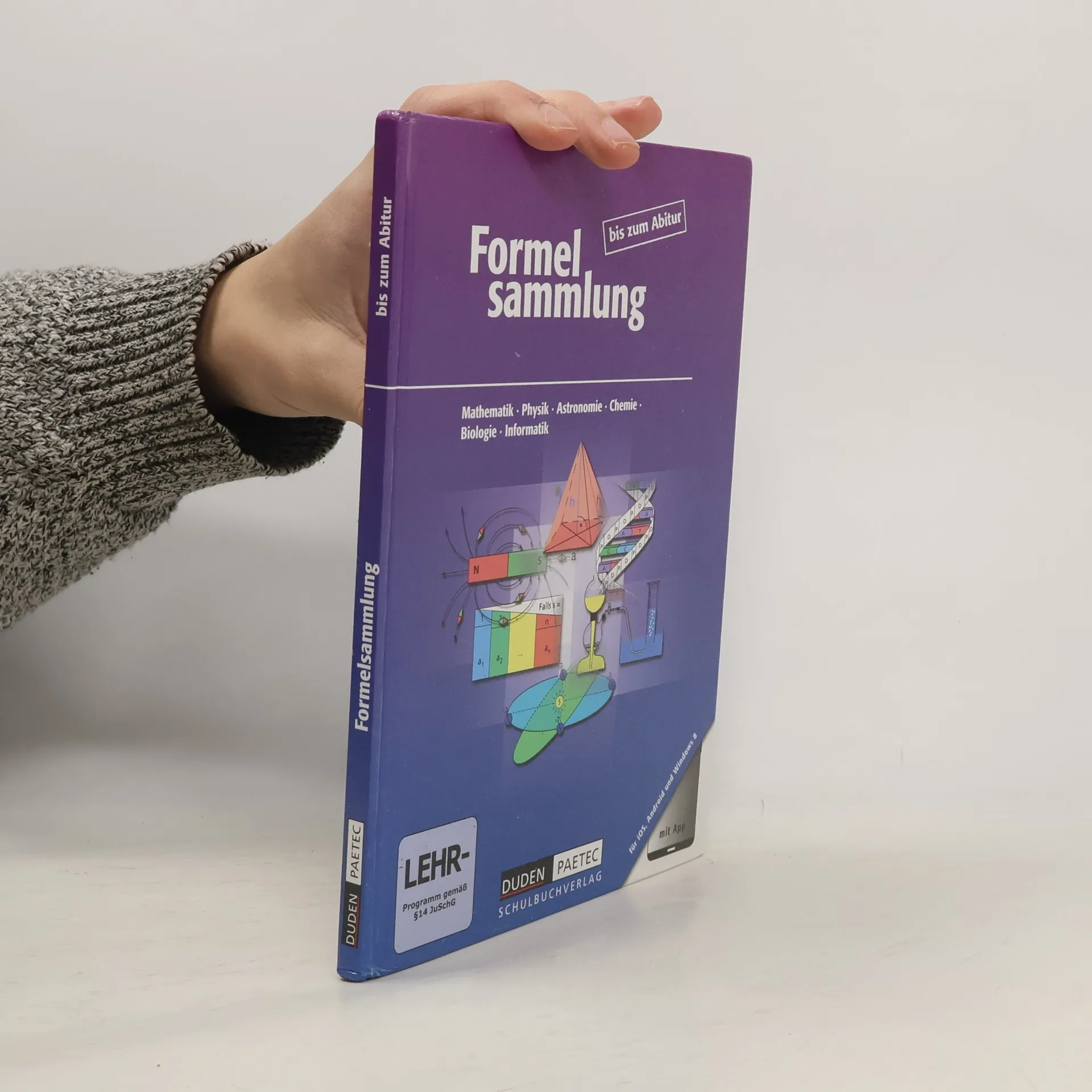 Informationen zum Titel: Die bewährte Formelsammlung bis zum Abitur - jetzt zusätzlich als Ausgabe mit App. Vorteile der App Programmiert für die wichtigsten Betriebssysteme: Apple iOS, Android, Windows 8 Umfasst alle Fächer des Printmediums Besitzt innovative Suchfunktionen und die Möglichkeit, Bookmarks (Favoriten) zu setzen und zu kommentieren Enthalten sind: ca. 1200 vorgerechnete Anwendungsbeispiele, ein funktionales Periodensystem und Daten zu allen chemischen Elementen, eine Notizfunktion, Deutschlandkarten Verbesserungen im Printmedium Im Chemieteil wird auf die neuen Gefahrenstoffsymbole Bezug genommen. Die Entsorgungssätze stehen im Zentrum. Im Mathematikteil sind einige unbestimmte Integrale hinzugekommen (u. a. das zum natürlichen Logarithmus). Der Informatikteil konzentriert sich bei den erweiterten ASCII-Zeichen auf den Zeichensatz ISO 8859-1.