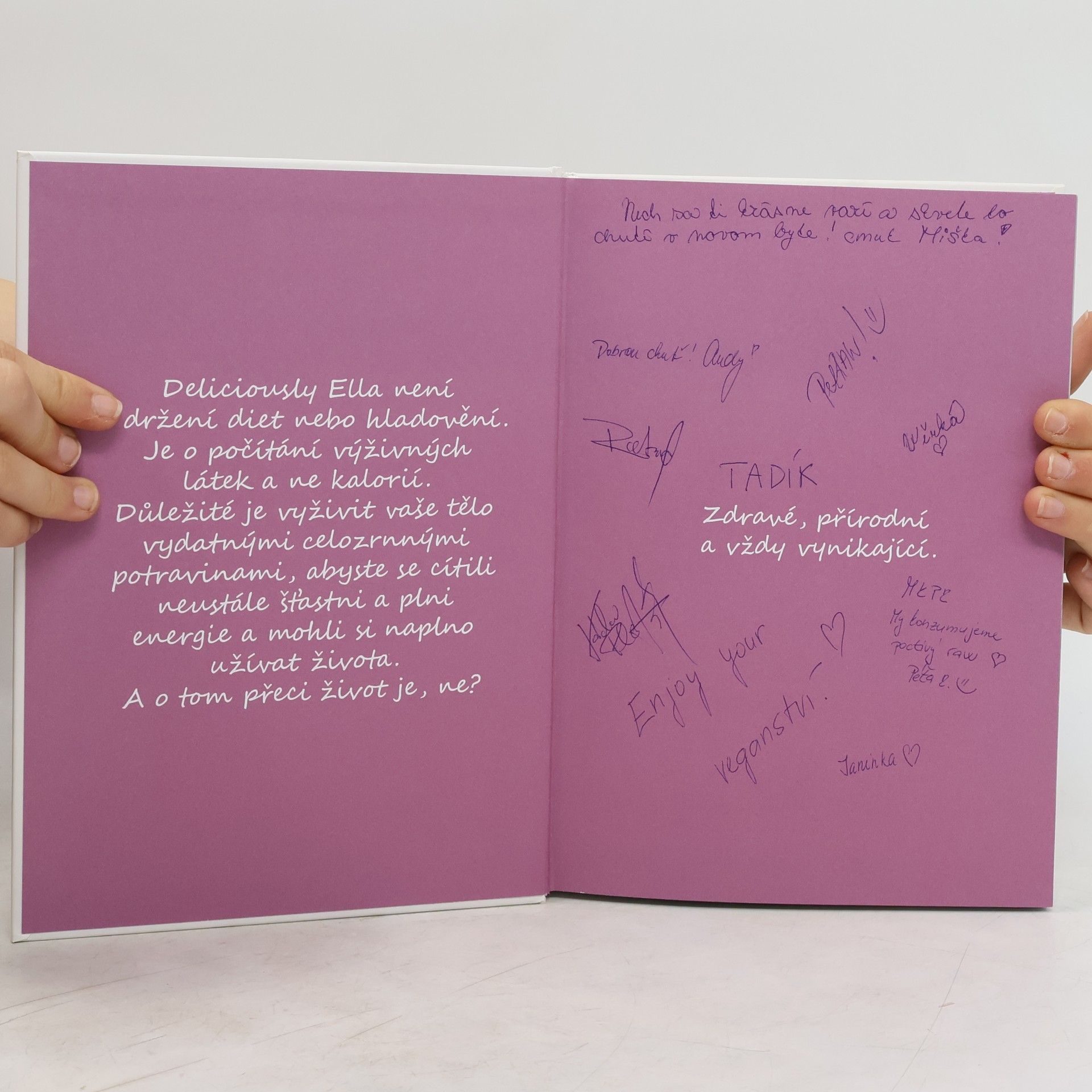 Úžasné ingredience a skvělá jídla, která si oblíbíte vy i vaše tělo. Od luxusních dezertů až po rychlá a nenáročná jídla, lahodné tipy, pochoutky založené na syrové stravě a pestré zeleninové saláty – to vše naleznete v této knize. Ella totiž věří, že základem životosprávy mají být přírodní suroviny, které budou jako balzám pro vaše tělo. Pokrmy připravené podle jejích receptů jsou jednoduché a chutnají báječně. Kniha v sobě skrývá více než 100 receptů na jídla, která neobsahují cukr, lepek ani mléčné výrobky. Vaše chuťové buňky vám poděkují, vaše pleť bude jen zářit a vy se budete cítit zdraví a plní energie. Ella si sama dříve nedokázala představit život bez cukru. Ví tedy moc dobře, jak obtížné bývá změnit své stravovací návyky. Její blog DELICIOUSLY ELLA si proto nesmíte nechat ujít! Každý měsíc jej navštíví dva milióny čtenářů z celého světa. Inspiraci Ella čerpá ze svých vlastních zkušeností a poznatků, které jí pomohly uzdravit se jednoduše pomocí vhodné životosprávy. Je neuvěřitelné, kolik různých pokrmů lze vytvořit za použití velmi jednoduchých ingrediencí a jak snadné je nahradit vaše oblíbené pokrmy jejich zdravými variantami. Ze všeho nejvíce vám Ella chce ukázat, že tento způsob stravování vůbec není založen na odříkání či hladovění. Podstatné je osvojit si pozitivní a zdravý životní styl.