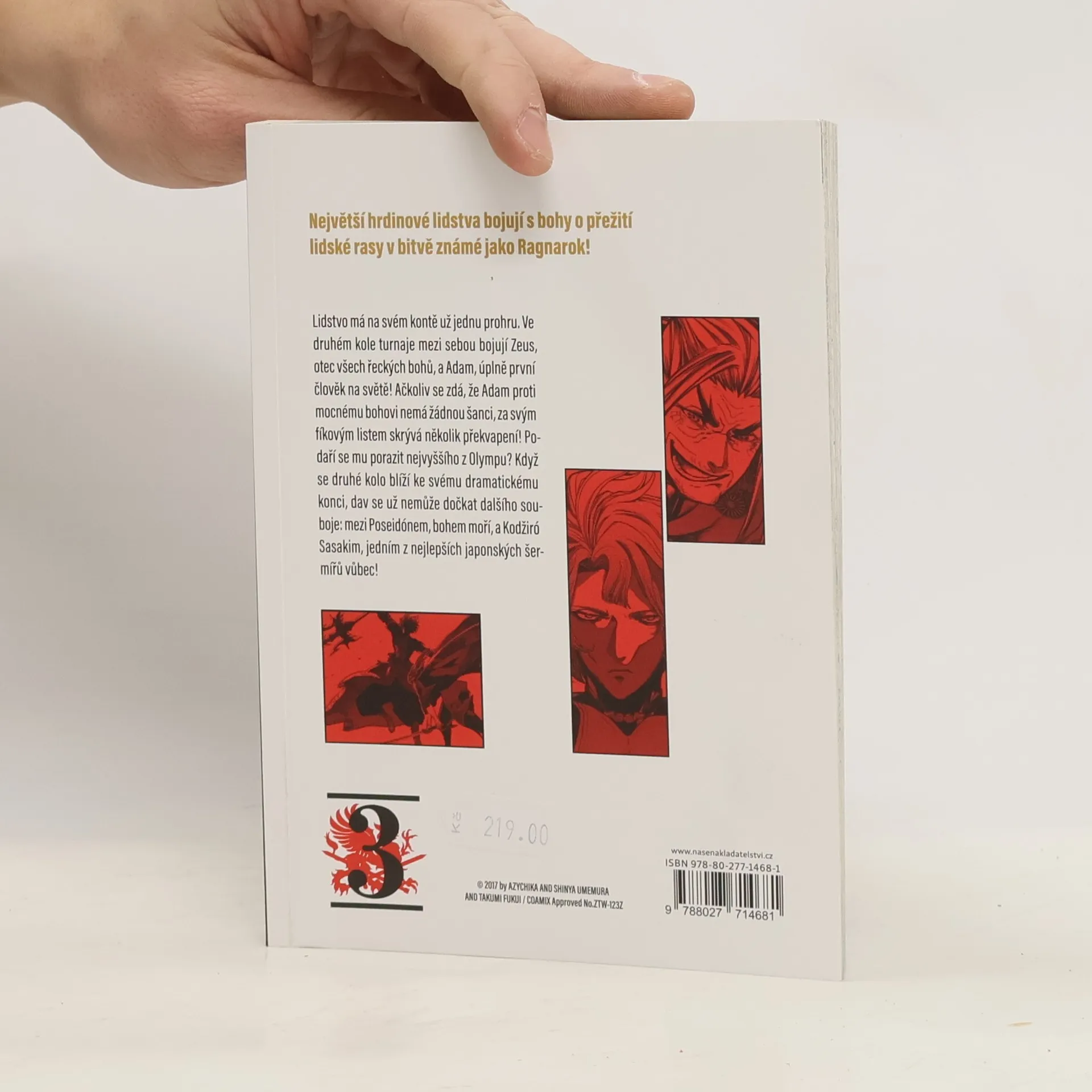 Největší hrdinové lidstva bojují s bohy o přežití lidské rasy v bitvě známé jako Ragnarok!Lidstvo má na svém kontě už jednu prohru. Ve druhém kole turnaje mezi sebou bojují Zeus, otec všech řeckých bohů, a Adam, úplně první člověk na světě! Ačkoliv se zdá, že Adam proti mocnému bohovi nemá žádnou šanci, za svým fíkovým listem skrývá několik překvapení! Podaří se mu porazit nejvyššího z Olympu? Když se druhé kolo blíží ke svému dramatickému konci, dav se už nemůže dočkat dalšího souboje: mezi Poseidónem, bohem moří, a Kodžiró Sasakim, jedním z nejlepších japonských šermířů vůbec!