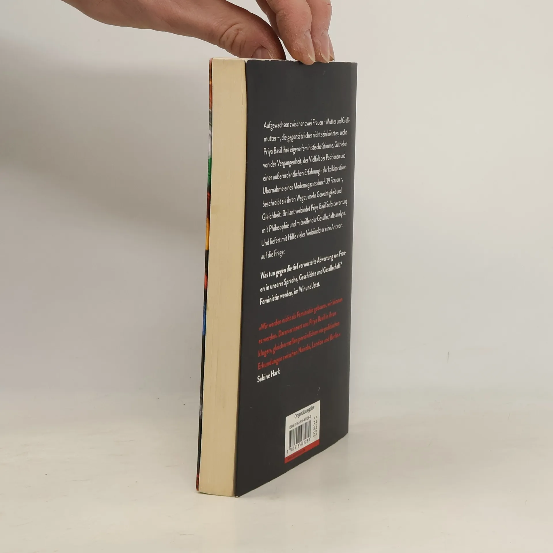Aufgewachsen zwischen zwei Frauen – Mutter und Großmutter –, die gegensätzlicher nicht sein könnten, sucht Priya Basil ihre eigene feministische Stimme. Getrieben von der Vergangenheit, der Vielfalt der Positionen und einer außerordentlichen Erfahrung – der kollaborativen Übernahme eines Modemagazins durch 39 Frauen – beschreibt sie ihren Weg zu mehr Gerechtigkeit und Gleichheit. Brilliant verbindet Priya Basil Selbstverortung mit Philosophie und mitreißender Gesellschaftsanalyse. Und liefert mit Hilfe vieler Verbündeter eine Antwort auf die Frage: Was tun gegen die tief verwurzelte Abwertung von Frauen in unserer Sprache, Geschichte und Gesellschaft? Feministin werden, im Wir und Jetzt.