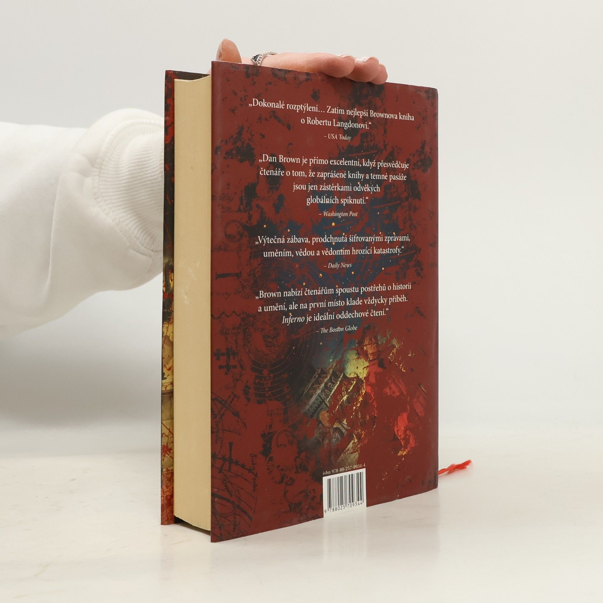 Dan Brown se vrací novým thrillerem Inferno, který je pokračováním světových bestsellerů Šifra mistra Leonarda, Andělé a démoni a Ztracený symbol. Ve svých románech Dan Brown mistrně spojuje nejzajímavější záhady historie umění s po věky fascinujícími symboly a šiframi. Robert Langdon se tentokráte ocitá v srdci Itálie, kde studuje mnoha záhadami a tajemstvími opředený rukopis – Danteho Peklo (Inferno). Musí se postavit tváří v tvář soupeři, který ho zavede do světa klasického umění, tajných chodeb a futuristických zbraní. Klíč k nezodpovězeným otázkám je skryt mezi řádky Danteho pekla a Langdon se opět vrhá do boje s časem, aby odvrátil zkázu, která světu hrozí.
