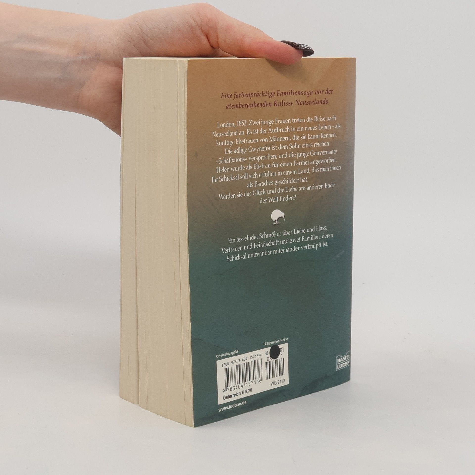 London, 1852: Zwei junge Frauen treten die Reise nach Neuseeland an. Es ist der Aufbruch in ein neues Leben - als künftige Ehefrauen von Männern, die sie kaum kennen. Die adlige Gwyneira ist dem Sohn eines reichen „Schafbarons“ versprochen, und die junge Gouvernante Helen wurde als Ehefrau für einen Farmer angeworben. Ihr Schicksal soll sich erfüllen in einem Land, das man ihnen als Paradies geschildert hat. Werden sie das Glück und die Liebe am anderen Ende der Welt finden? Ein fesselnder Schmöker über Liebe und Hass, Vertrauen und Feindschaft und zwei Familien, deren Schicksal untrennbar miteinander verknüpft ist.