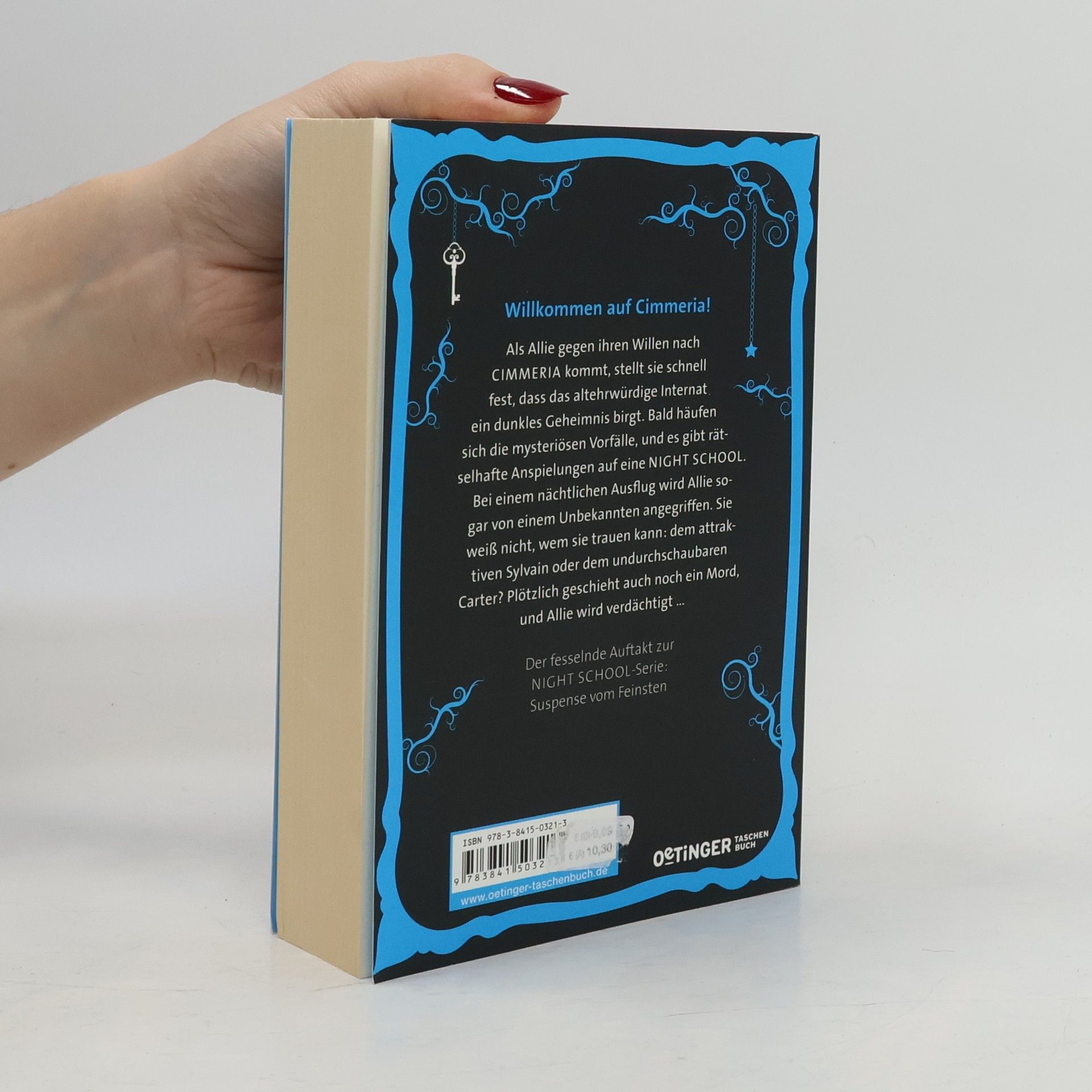 Wenn nichts ist, wie es scheint. Das spurlose Verschwinden ihres Bruders hat Allie aus dem Gleichgewicht gebracht. Sie rebelliert und wird von ihren Eltern auf das Internat Cimmeria geschickt, wo nicht einmal Handys erlaubt sind. Schon bald findet sie Zugang zu einer Clique und wird von zwei Jungen umworben. Gleichzeitig häufen sich eigenartige Vorfälle auf Cimmeria, und als ein Mord geschieht, gerät Allie unter Verdacht. Auf der Suche nach dem wahren Mörder stößt sie auf eine mysteriöse Verbindung ihrer Mutter zur Schule und gerät selbst in Lebensgefahr. Wem kann sie jetzt noch trauen? Atemlos, packend, geheimnisvoll: Band 1 um das Rätsel der NIGHT SCHOOL.