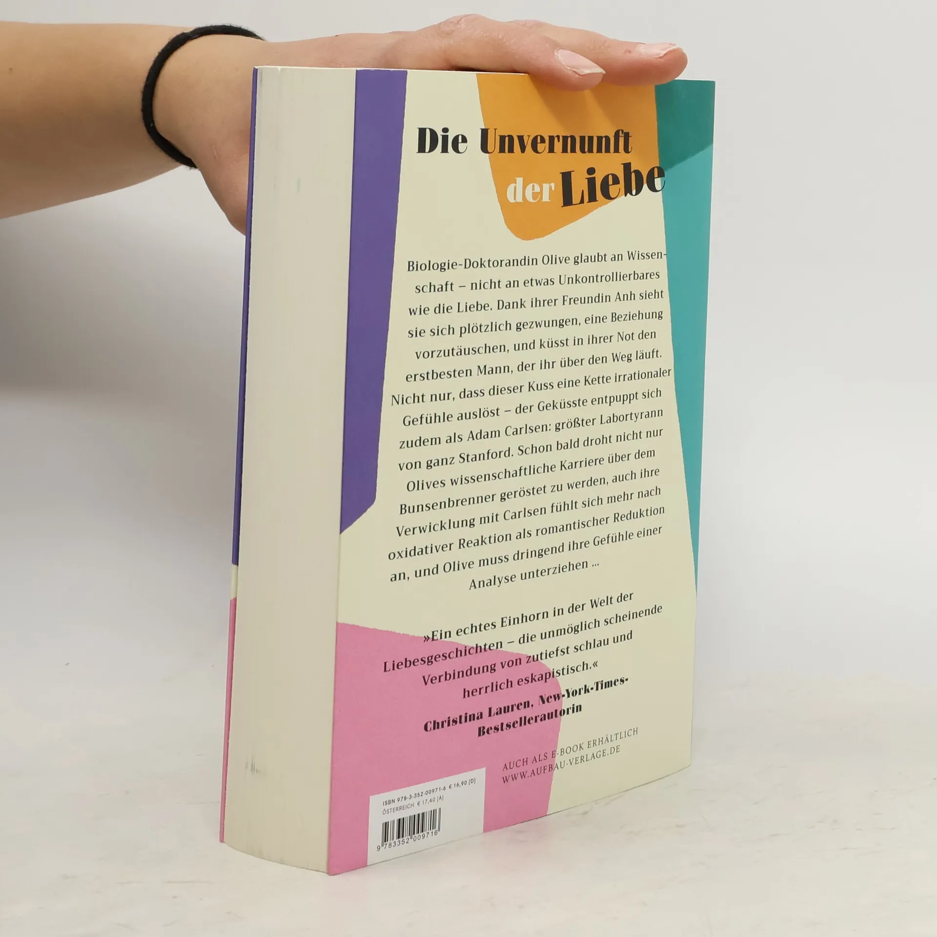Die Unvernunft der Liebe Biologie-Doktorandin Olive glaubt an Wissenschaft – nicht an etwas Unkontrollierbares wie die Liebe. Dank ihrer Freundin Anh sieht sie sich plötzlich gezwungen, eine Beziehung vorzutäuschen, und küsst in ihrer Not den erstbesten Mann, der ihr über den Weg läuft. Nicht nur, dass dieser Kuss eine Kette irrationaler Gefühle auslöst – der Geküsste entpuppt sich zudem als Adam Carlsen: größter Labortyrann von ganz Stanford. Schon bald droht nicht nur Olives wissenschaftliche Karriere über dem Bunsenbrenner geröstet zu werden, auch ihre Verwicklung mit Carlsen fühlt sich mehr nach oxidativer Reaktion als romantischer Reduktion an, und Olive muss dringend ihre Gefühle einer Analyse unterziehen … “Ein echtes Einhorn in der Welt der Liebesgeschichten – die unmöglich scheinende Verbindung von zutiefst schlau und herrlich eskapistisch.” Christina Lauren, New-York-Times-Bestsellerautorin