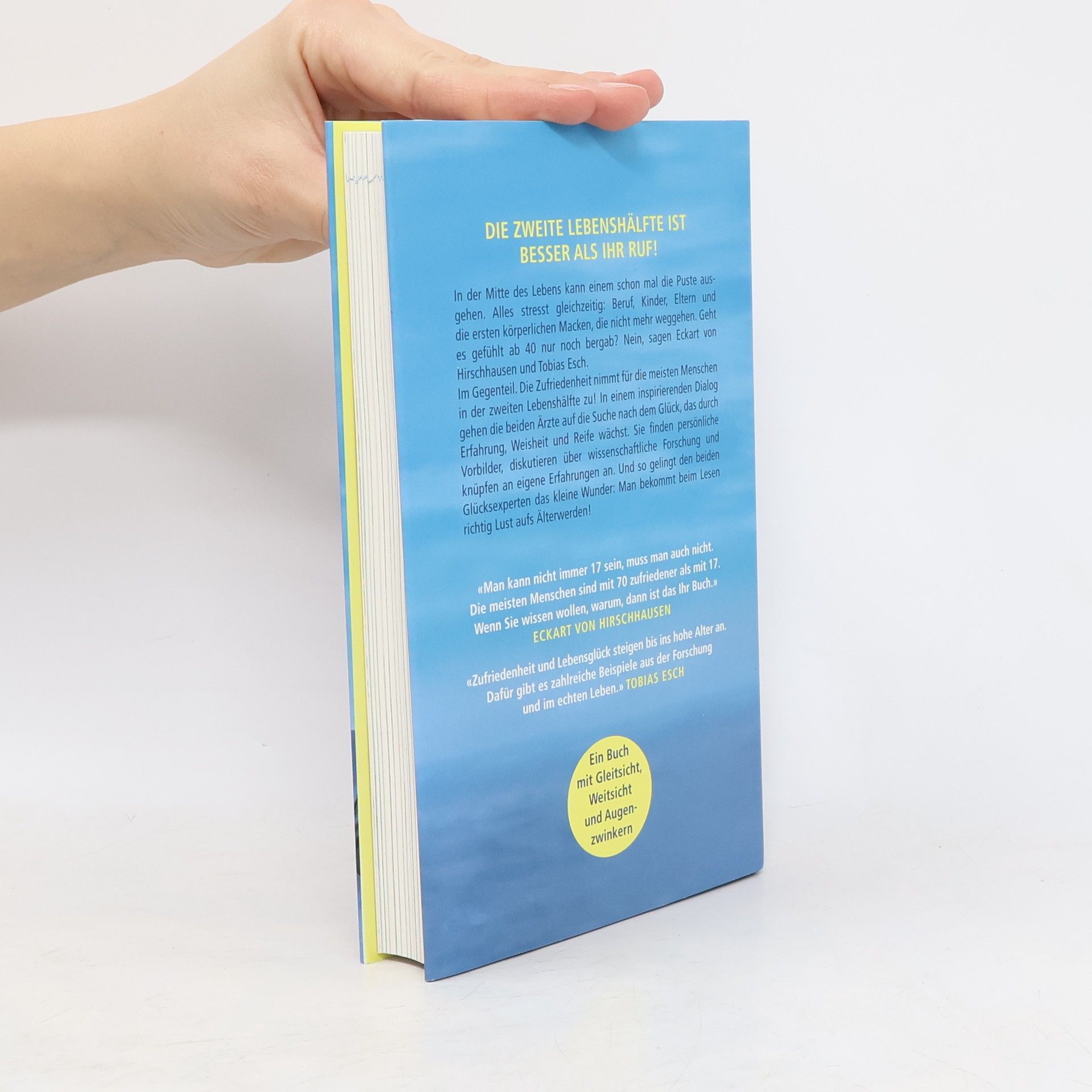 Eckart von Hirschhausen und Tobias Esch stellen im gemeinsamen Gespräch die vorherrschende Meinung über das Älterwerden auf den Kopf Könnte es sein, dass die Zufriedenheit nach der Jugend und der stressigen Phase in der Mitte des Lebens nicht schwindet, sondern sogar wächst? Eckart von Hirschhausen und Tobias Esch, die beiden Experten für das Glücklichsein, tun sich zusammen um zu klä Worauf darf man sich mitten im Leben freuen? In ihrem Dialog prüfen sie die These, dass das Lebensglück bis ins hohe Alter ansteigen kann. Und so entsteht ein Gespräch, bei dem beide – der Fernsehmoderator und der Gesundheitsforscher – persönliche Vorbilder benennen, Anknüpfungspunkte zu eigenen Erfahrungen geben und, trotz mancher Tücken, Lust machen auf das Älterwerden. Hören Sie Eckart von Hirschhausen und Tobias Esch im Gespräch über das Altern – gerade so, als würden Sie mit am Tisch sitzen.(1CD, ca. 1h 11) .
