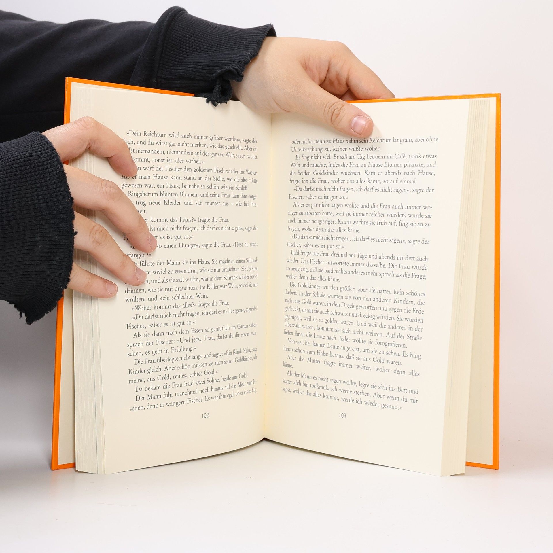 54 ausgewählte Märchen, von Janosch neu erzählt für Kinder von heute. Viele der altbekannten Märchen sind neu erzählt, gegen den Strich gebürstet, manchmal mit einer ganz neuen, aktuellen Moral. Janosch erzählt die Märchen der Brüder Grimm neu und oft ganz anders. Er fabuliert ungeniert und spart nicht mit lustigen Pointen. Einfallsreich und listig erzählt er vom Froschkönig und vom gestiefelten Kater, von Prinzessin Mäusehaut, von Hans im Glück und wie das eigentlich war mit des Teufels drei goldenen Haaren. - Und Lumpengesindel ärgert den Taxifahrer, gegen die schlaue Gans ist der Fuchs machtlos, und Hans mein Igel wird zum gefeierten Medienstar. Janosch hat für diese Neuausgabe alle Märchen neu durchgesehen, verändert oder ergänzt. Auch neue Märchen sind hinzugekommen. Und vor allem hat er neue Bilder gemalt, farbige und lustige.