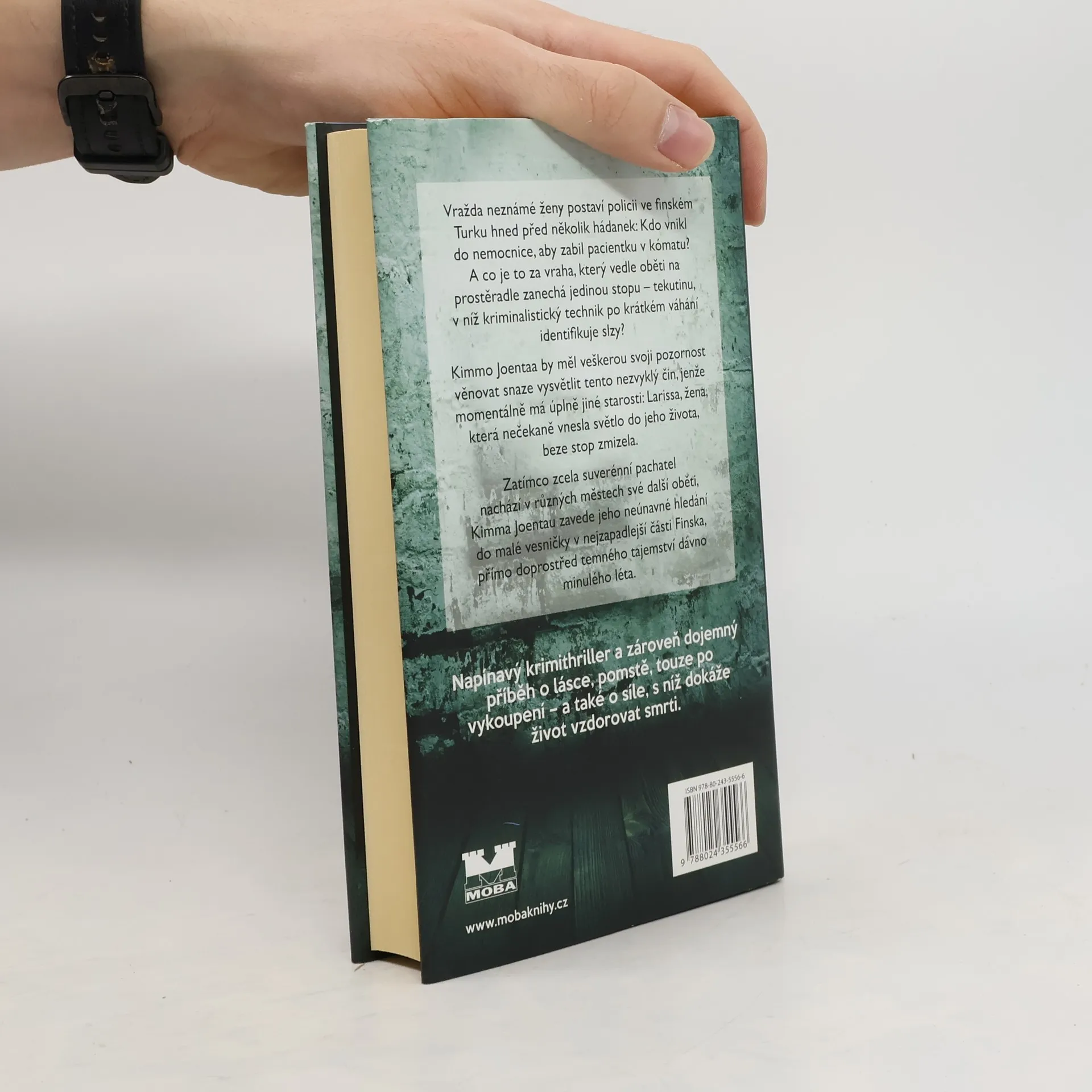 Vražda neznámé ženy postaví policii ve finském Turku hned před několik hádanek: Kdo vnikl do nemocnice, aby zabil pacientku v kómatu? A co je to za vraha, který vedle oběti na prostěradle zanechá jedinou stopu – tekutinu, v níž kriminalistický technik po krátkém váhání identifikuje slzy? Kimmo Joentaa by měl veškerou svoji pozornost věnovat snaze vysvětlit tento nezvyklý čin, jenže má momentálně úplně jiné starosti: Larissa, žena, která nečekaně vnesla světlo do jeho života, beze stop zmizela.Zatímco zcela suverénní pachatel v různých městech nachází své další oběti, Kimma Joentau přivede jeho neúnavné hledání do malé vesničky v nejzapadlejší finské provincii, přímo doprostřed temného tajemství dávno minulého léta...