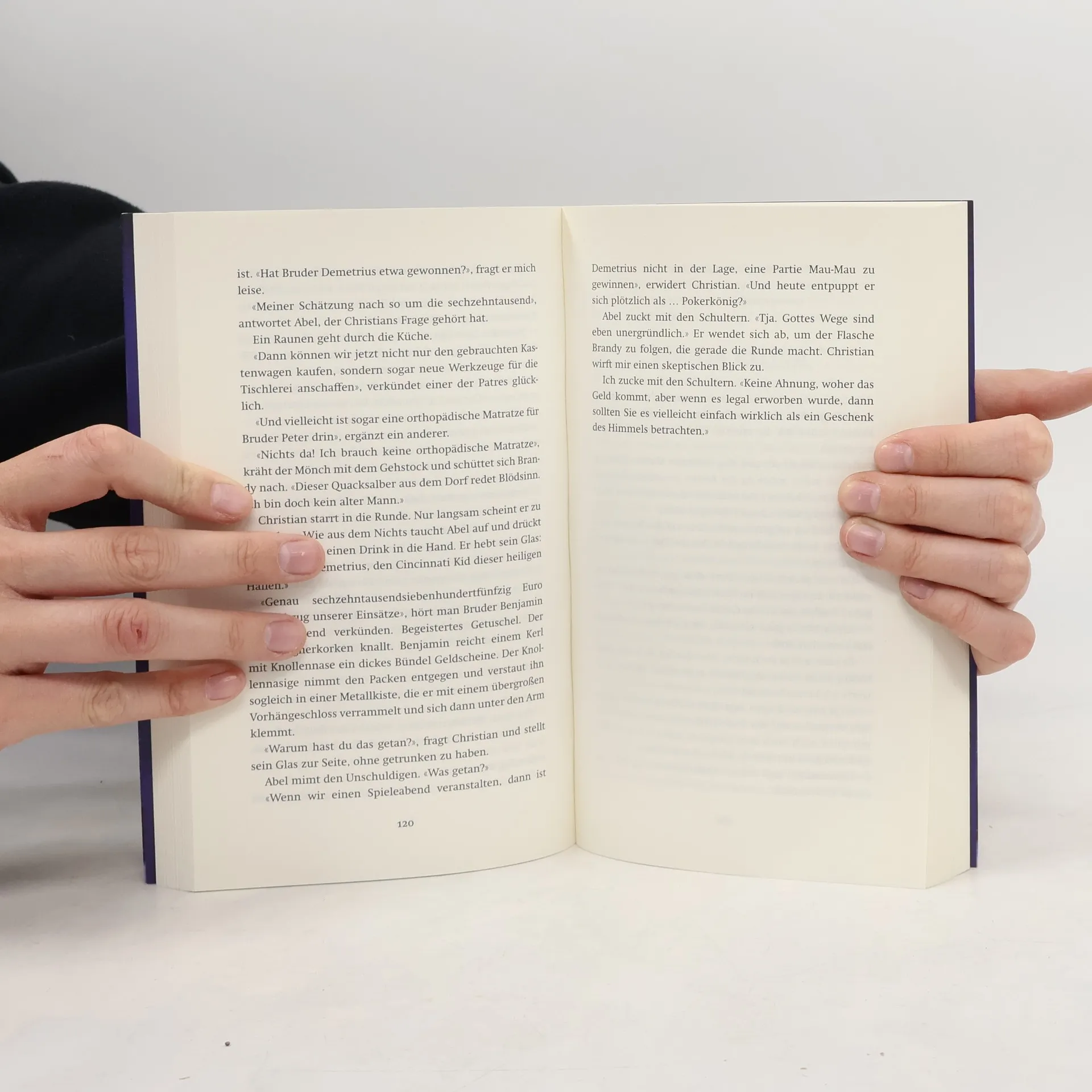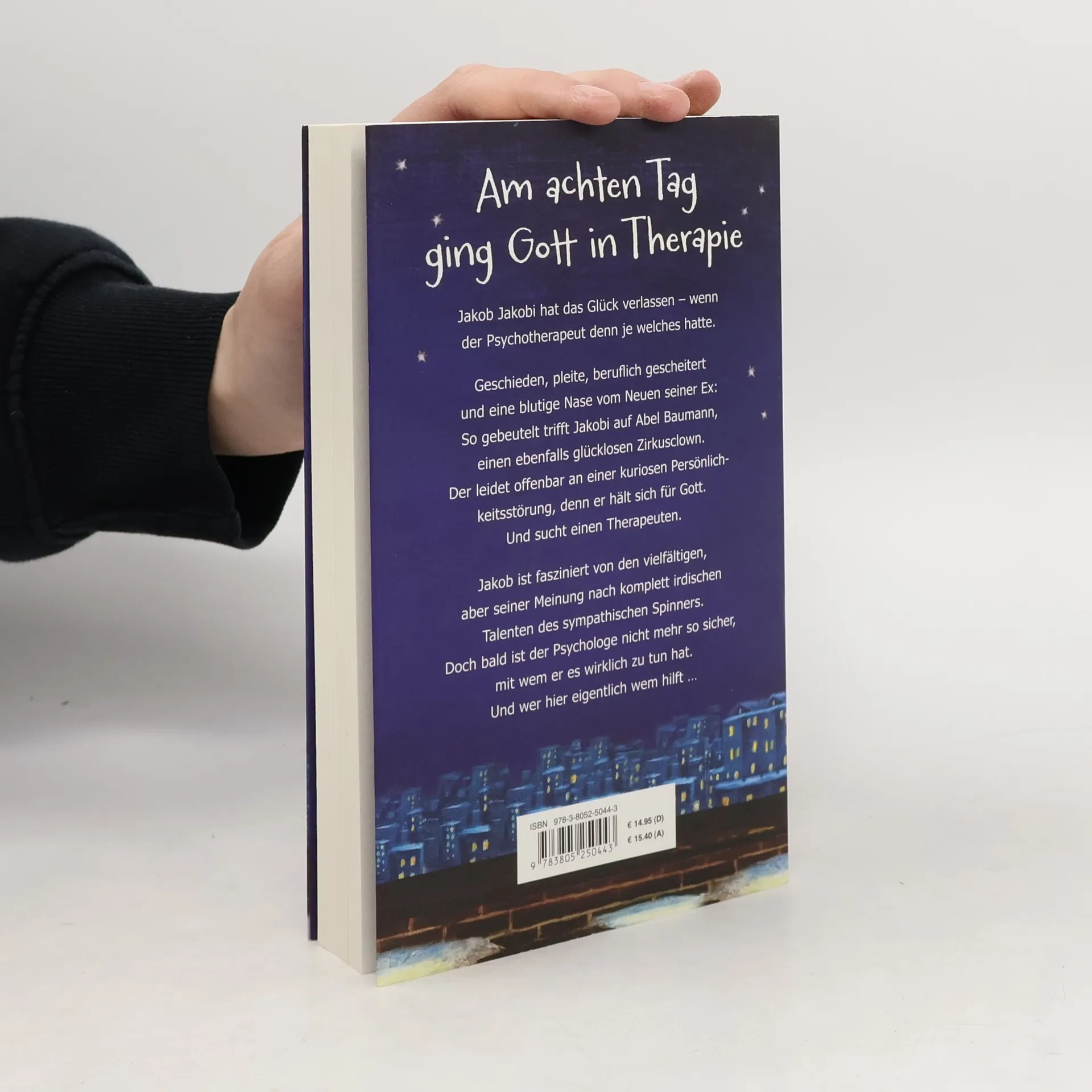 «Vor Ihnen sitzt der liebe Gott höchstpersönlich», erklärt mein Gegenüber und wischt sich die Lachtränen aus dem Gesicht.Wir schweigen.«Witzig», sage ich nach einer Weile und gebe mich unbeeindruckt. «Ich hab Sie mir immer anders vorgestellt.»Baumann hebt den Zeigefinger und sagt mit gespielter Strenge: «Das ist verboten. Man darf sich kein Bild von mir machen.»«Na, immerhin scheint Gott Humor zu haben», sage ich.Baumann nickt. «Es bleibt Gott nichts anderes übrig, als die Dinge mit Humor zu nehmen.» Sein Lächeln verwandelt sich in einen Anflug von Melancholie. Nachdenklich schaut er zu Boden. «Es ist die Wahrheit, Dr. Jakobi. Ich bin es wirklich.» Er beugt sich vor und sieht mir nun direkt in die Augen. «Ich bin Gott. Und ich bin, unter uns gesagt, ziemlich im Arsch. Es wäre also schön, wenn Sie mir helfen könnten, Doktor.»