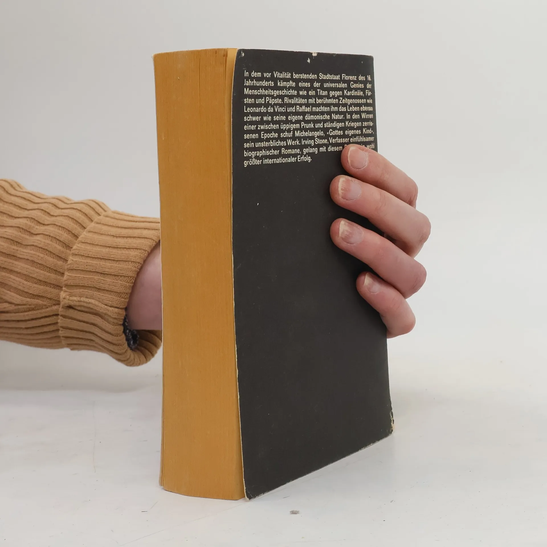 In dem vor Vitalität berstenden Stadtstaat Florenz des 16. Jahrhunderts kämpfte eines der universalen Genies der Menschheitsgeschichte wie ein Titan gegen Kardinäle, Fürsten und Päpste. Rivalitäten mit berühmten Zeitgenossen wie Leonardo da Vinci und Raffael machten ihm das Leben ebenso schwer wie seine eigene dämonische Natur. In den Wirren einer zwischen üppigem Prunk und ständigen Kriegen zerrissenen Zeit schuf Michelangelo, "Gottes eigenes Kind", sein unsterbliches Werk.