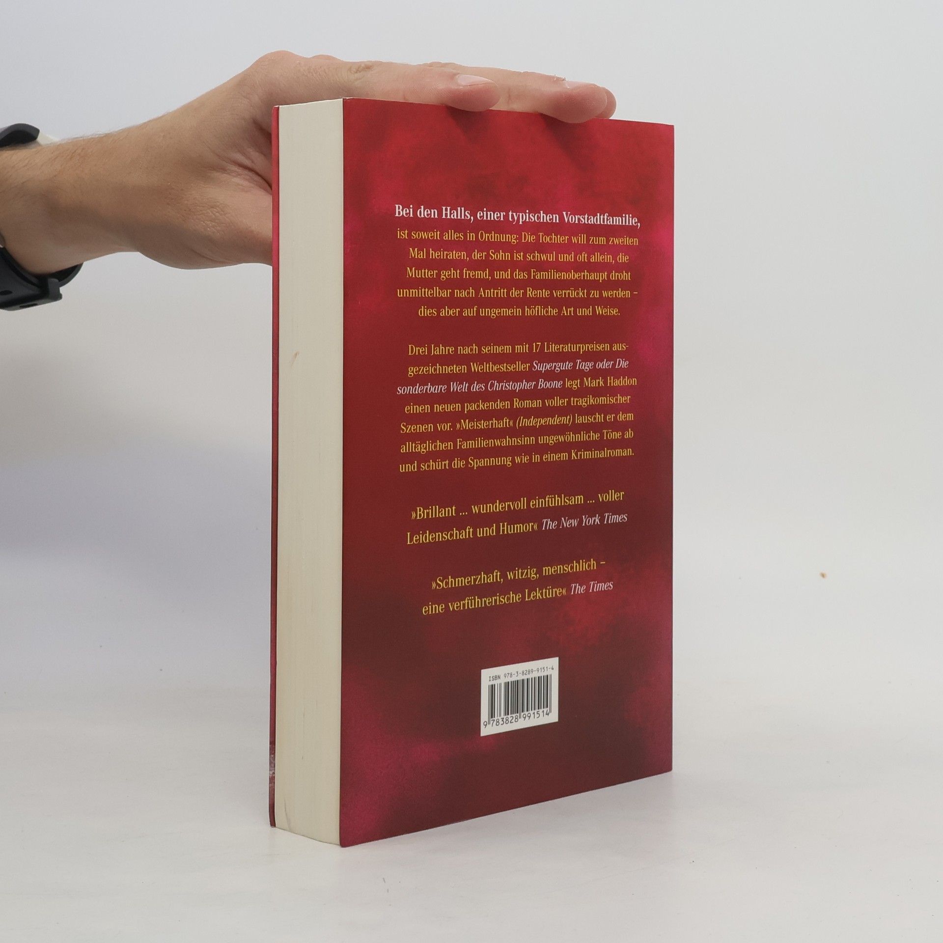 Bei den Halls, einer typischen Vorstadtfamilie, scheint alles in Ordnung: Die Tochter plant ihre zweite Hochzeit, der Sohn ist schwul und oft allein, die Mutter hat eine Affäre, und der Vater droht kurz nach seiner Pensionierung verrückt zu werden – jedoch auf sanfte Weise. Als George Hall in einem Kaufhaus einen schwarzen Anzug anprobiert, entdeckt er einen dunklen Fleck an seiner Hüfte, was ihn zunächst an Krebs denken lässt. Nach einem Blackout versucht er, dies vor seiner Familie geheim zu halten. Seine Tochter Katie hingegen sorgt mit ihren ständigen Lebensentwürfen für Aufregung. Sie kündigt an, erneut zu heiraten, und als das Paar George und seiner Frau vorgestellt wird, erleidet er erneut eine Atemnot. Kurz darauf erwischt er seine Frau beim Seitensprung. Auch Sohn Jamie hat es nicht leicht: Er hat endlich einen festen Freund, zögert jedoch, ihn zur Hochzeit seiner Schwester mitzunehmen, was dazu führt, dass der Freund sich zurückzieht. Diese absurde Situation wird noch komplizierter, als Katies Hochzeit ins Wanken gerät. Mark Haddon entfaltet aus der Perspektive der vier Hauptfiguren ein komisches und abgründiges Drama über die chaotischen Dynamiken der modernen Familie, die trotz ihrer Herausforderungen für das Überleben unserer Gesellschaft unerlässlich ist.
