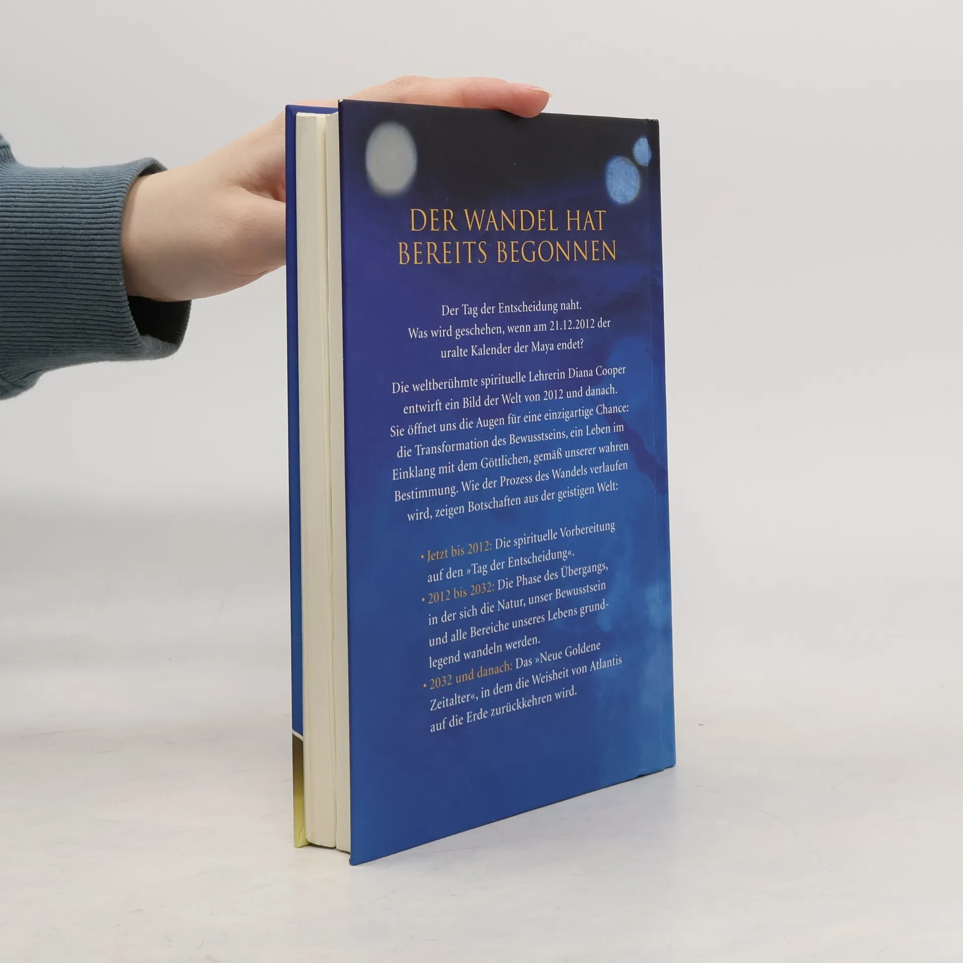 2012 – Weckruf für die Menschheit Der Tag der Entscheidung naht. Was wird geschehen, wenn am 21.12.2012 der uralte Kalender der Maya endet? Wird sich unsere Welt für immer verändern? Die weltberühmte spirituelle Lehrerin Diana Cooper weiß mehr: Die Menschheit steht an der Schwelle zu einem aufregenden neuen Zeitalter mit hoher geistig-spiritueller Energie. Diana Cooper öffnet uns die Augen für eine einzigartige Chance: die revolutionäre Transformation des Bewusstseins, ein Leben im Einklang mit dem göttlichen Plan der Evolution. Wie der Prozess des Wandels verlaufen wird, zeigen Botschaften aus der Geistigen Welt, die von Diana Cooper empfangen wurden: • Jetzt bis 2012: die spirituelle Vorbereitung auf den „Tag der Entscheidung“• 2012 bis 2032: die Phase des Übergangs, in der sich die Natur, unserBewusstsein und alle Bereiche unseres Lebens grundlegend wandeln werden• 2032 und danach: das „Neue Goldene Zeitalter“, in dem die Weisheitvon Atlantis auf die Erde zurückkehren wird Mit zahlreichen praktischen Übungen und Engelbotschaften, um die Transformation der Erde in die richtigen Bahnen zu lenken.
